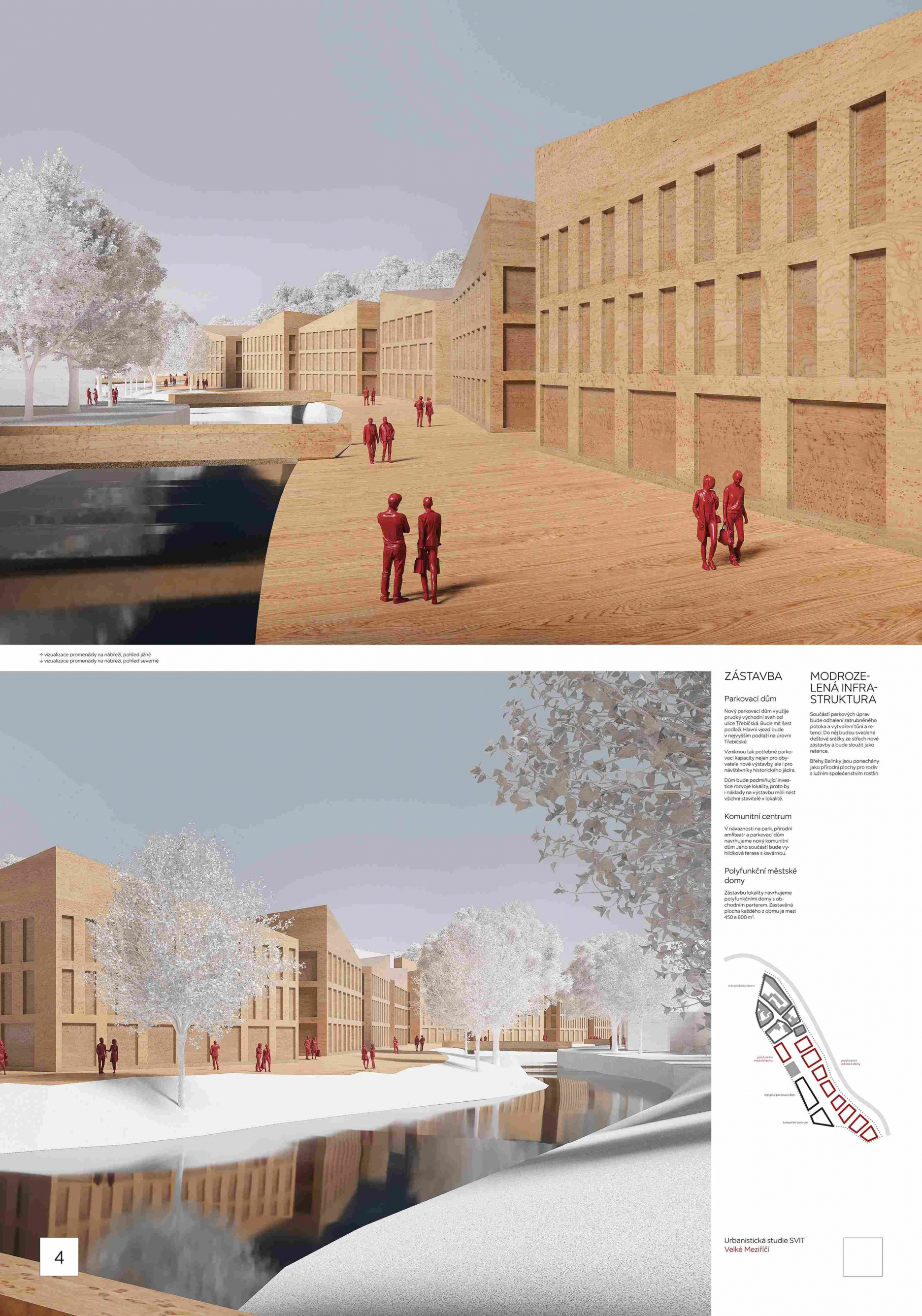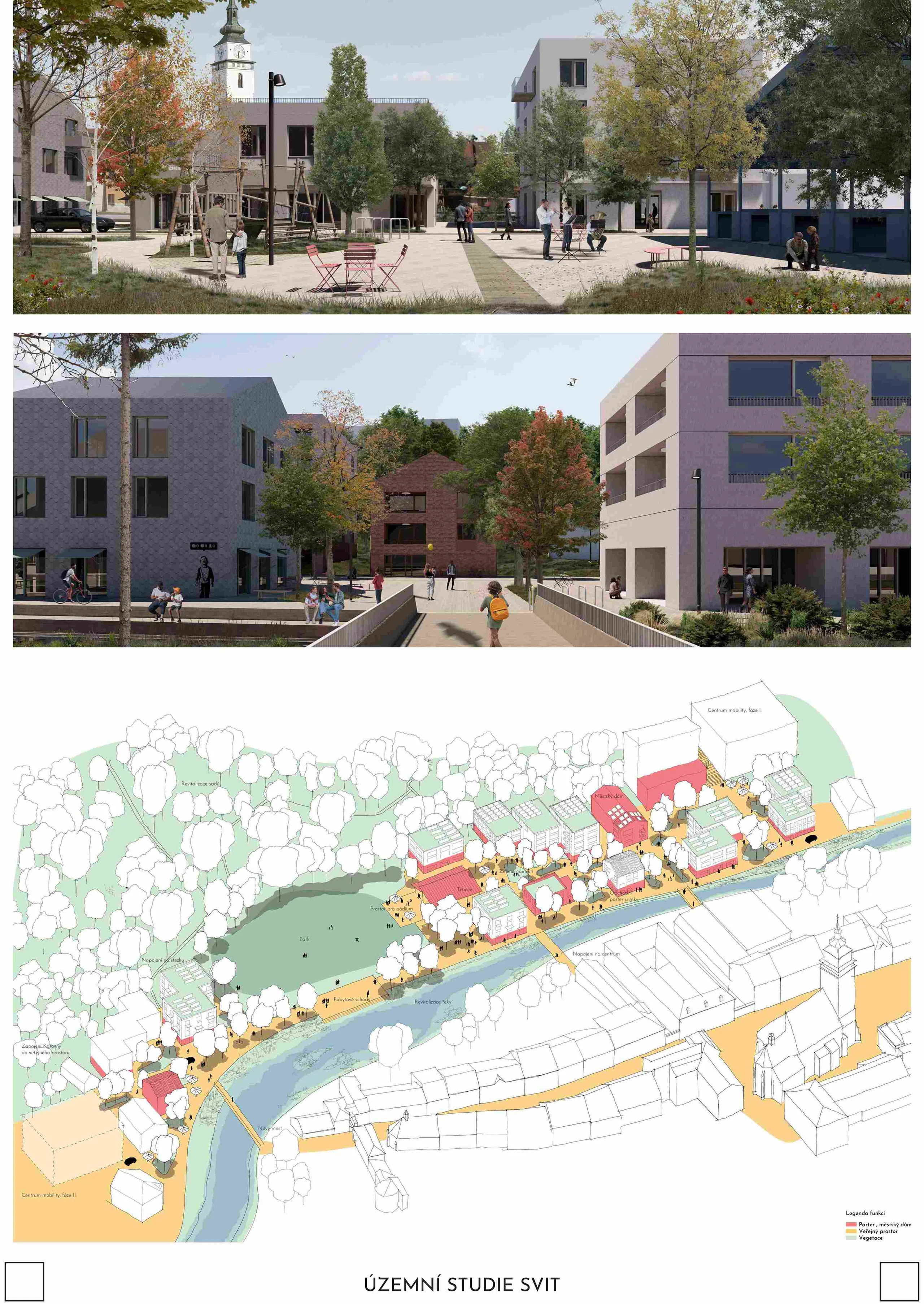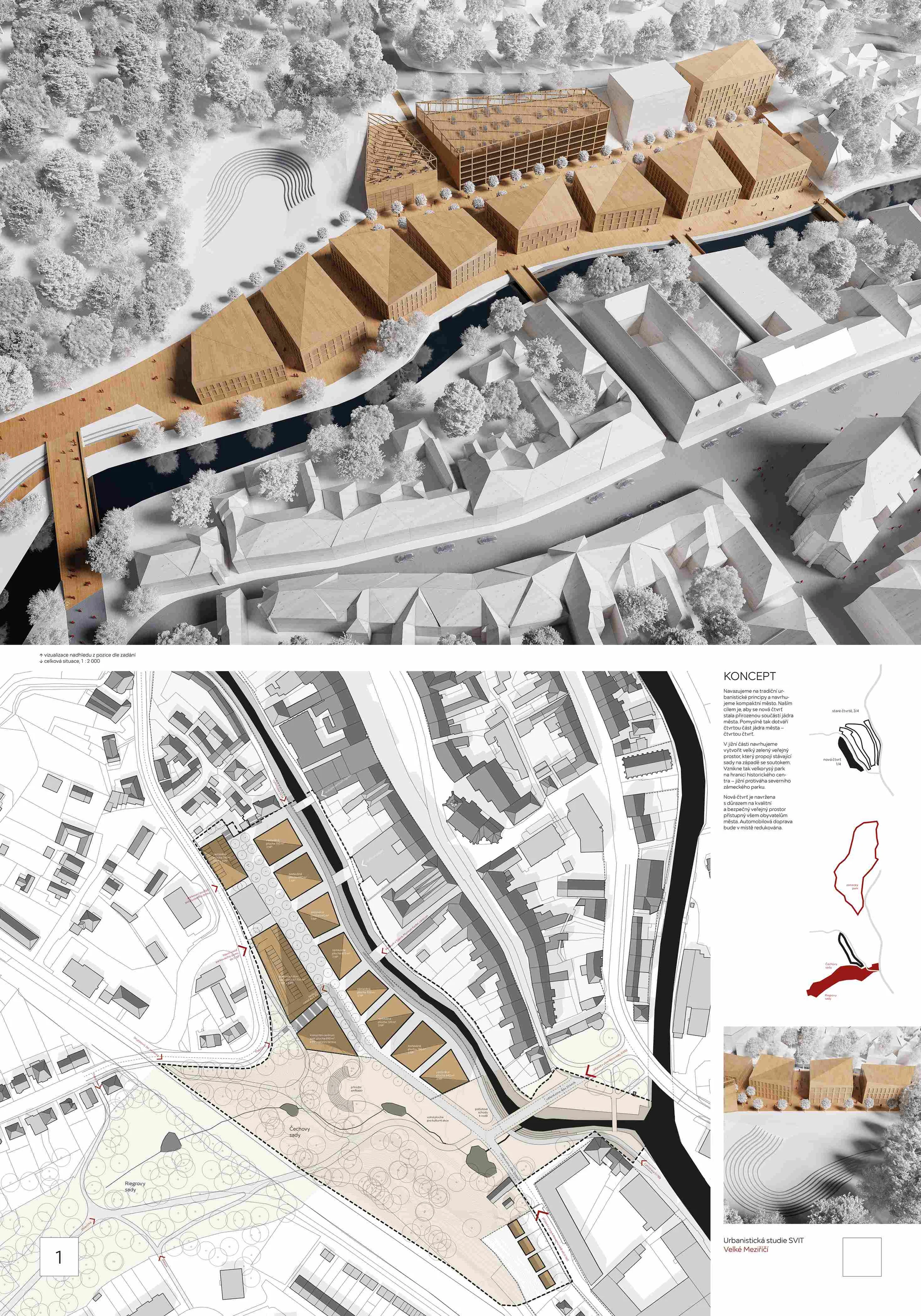 Mesto Velké Meziříčí vyhlásilo otvorenú jednofázovú urbanistickú súťaž na vypracovanie štúdie pre revitalizáciu lokality s pozostatkami priemyselného areálu Svit, ktorý v minulosti slúžil na výrobu obuvi. Cieľom súťaže bolo získať návrhy na optimálne urbanistické riešenie celej lokality, s dôrazom na prepojenie sútoku riek Balinky a Oslavy s Čechovými a Riegrovými sadmi. Autori mali predložiť víziu modernej zóny, ktorá bude zahŕňať kultúrne, spoločenské a rekreačné funkcie, čím sa posilní centrum mesta. Štúdia mala zároveň obsahovať ideálnu etapizáciu rozvoja lokality. Do verejnej jednokolovej projektovej súťaže sa zapojilo 10 autorských kolektívov. Porota ocenila tri najlepšie návrhy a udelila dve odmeny. Tretie miesto obsadil bratislavský ateliér SIMPLE CODE a medzi odmenené návrhy sa zaradil kolektív 2M ateliér architektúry, rovnako z nášho hlavného mesta.