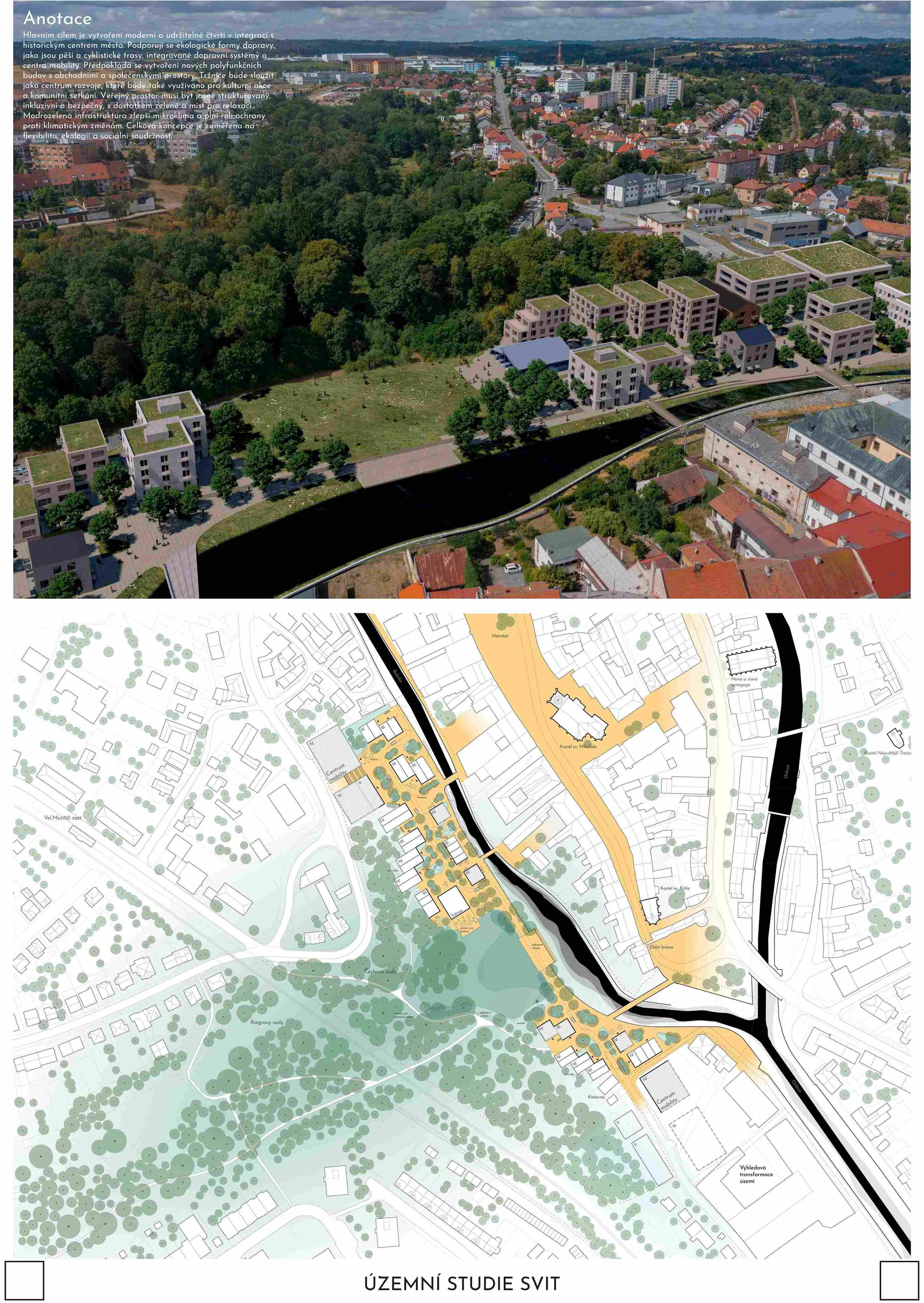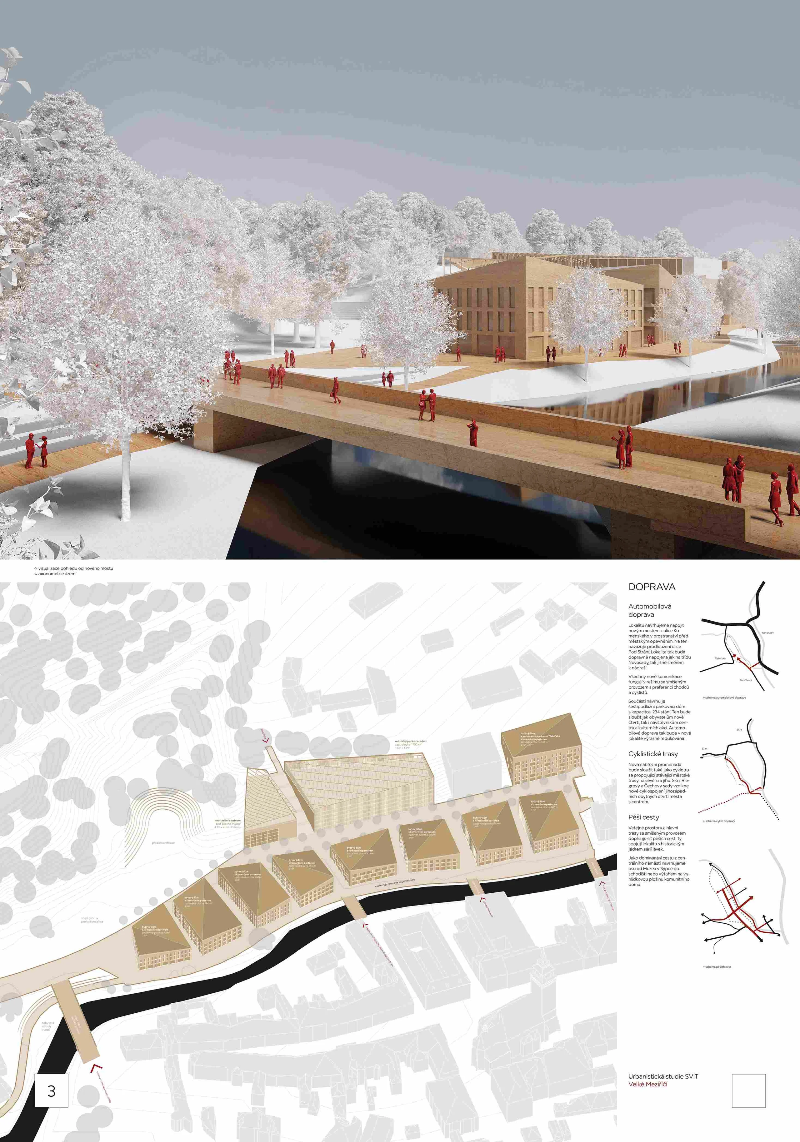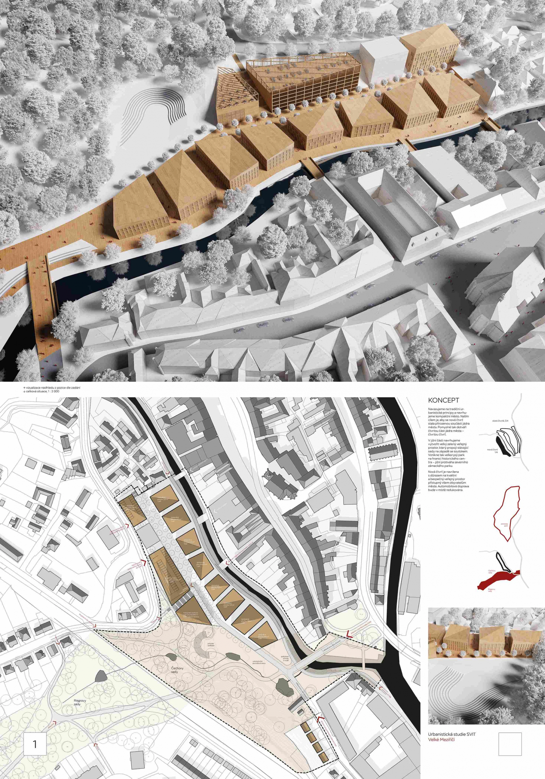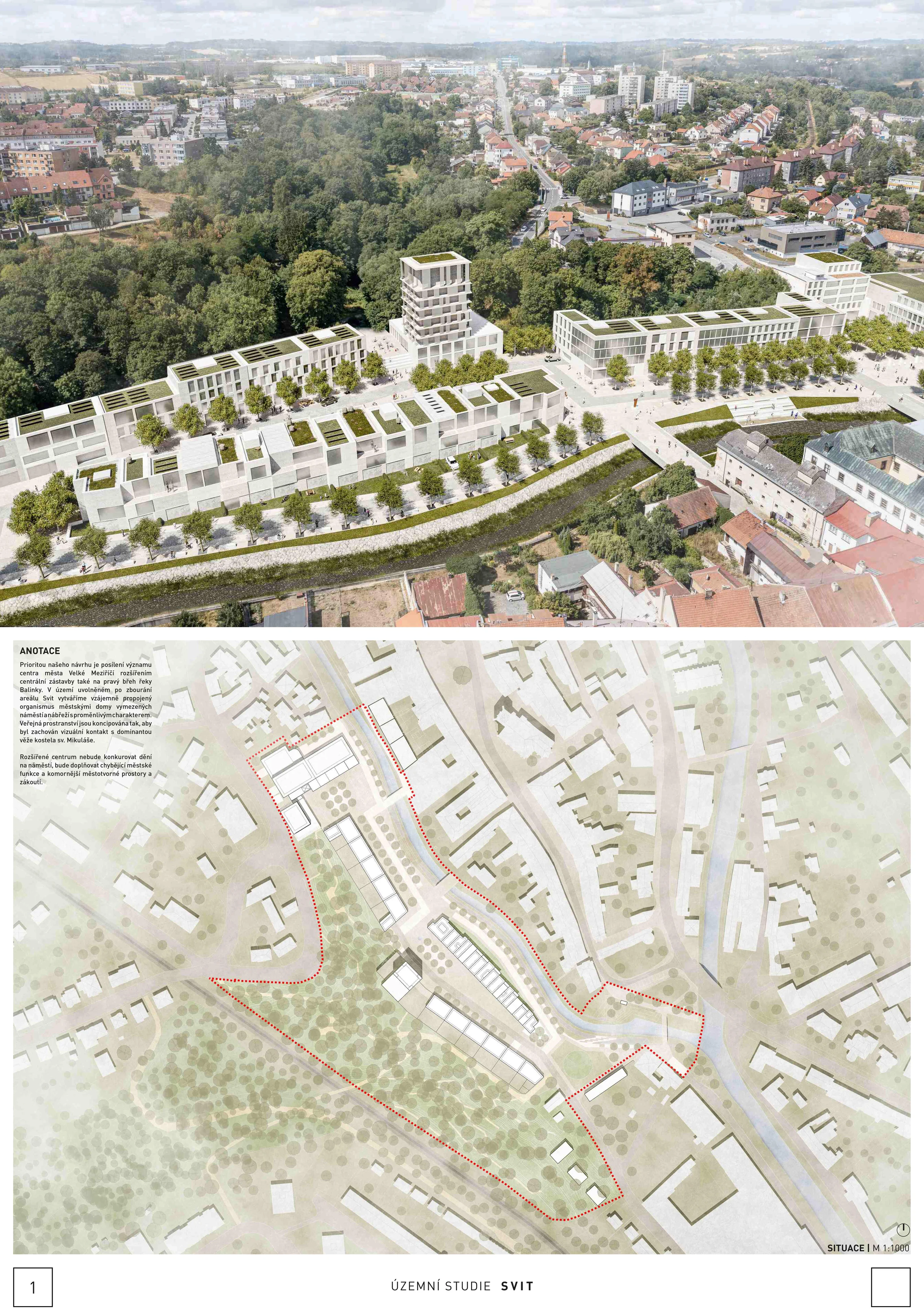 Mesto Velké Meziříčí vyhlásilo otvorenú jednofázovú urbanistickú súťaž na vypracovanie štúdie pre revitalizáciu lokality s pozostatkami priemyselného areálu Svit, ktorý v minulosti slúžil na výrobu obuvi. Cieľom súťaže bolo získať návrhy na optimálne urbanistické riešenie celej lokality, s dôrazom na prepojenie sútoku riek Balinky a Oslavy s Čechovými a Riegrovými sadmi. Autori mali predložiť víziu modernej zóny, ktorá bude zahŕňať kultúrne, spoločenské a rekreačné funkcie, čím sa posilní centrum mesta. Štúdia mala zároveň obsahovať ideálnu etapizáciu rozvoja lokality. Do verejnej jednokolovej projektovej súťaže sa zapojilo 10 autorských kolektívov. Porota ocenila tri najlepšie návrhy a udelila dve odmeny. Tretie miesto obsadil bratislavský ateliér SIMPLE CODE a medzi odmenené návrhy sa zaradil kolektív 2M ateliér architektúry, rovnako z nášho hlavného mesta.