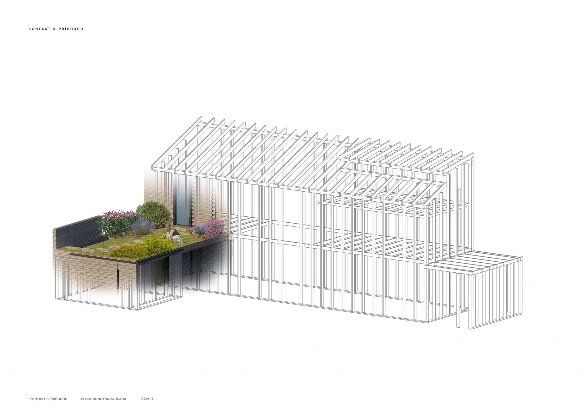 Odborná porota vyhodnotila jako nejlepší projekt studenta Jiřího Petrželky z Fakulty stavební ČVUT v Praze. Jeho navrhovaná dřevostavba s originálním využitím sklolaminátových fasádních desek disponuje 106 m2 obytné plochy. Po většinu roku dům využívá elektřinu, kterou si sám vyrobí díky fotovoltaickým panelům integrovaným do střechy. Ty spolu s bateriovým úložištěm zajišťují domu energetickou soběstačnost po dobu 265 dní v roce. Návrh počítá také s maximální recyklací šedé vody a s využitím dešťové vody, díky čemuž dokáže ušetřit až polovinu běžné spotřeby pitné vody. Celkové náklady na stavbu tohoto domu by měly včetně všech potřebných technologií dosahovat 4 milionů korun.
