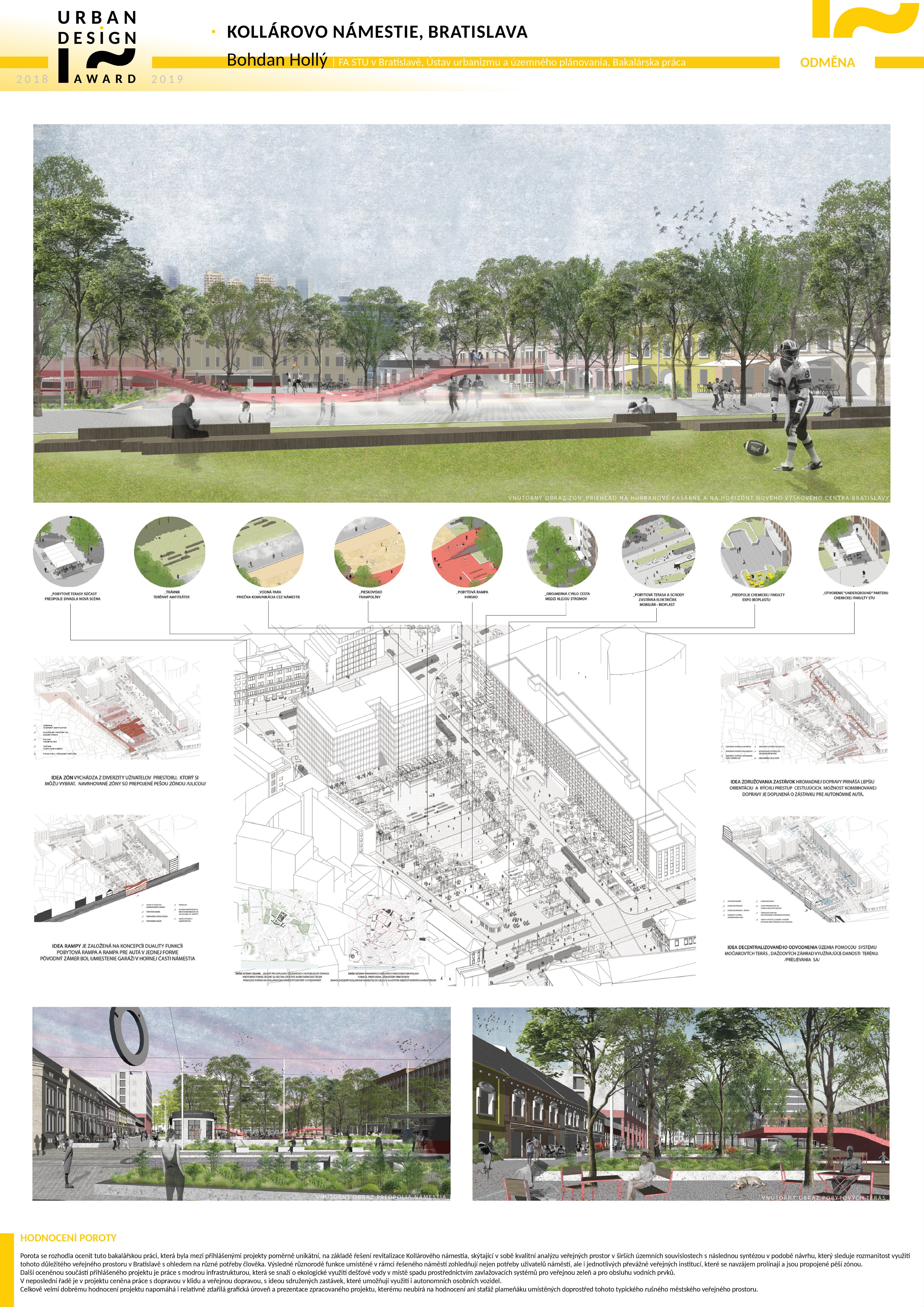 Odmenou porota ocenila tiež Bohdana Hollého, (Ústav urbanizmu a územného plánovania, FA STU v Bratislave) za projekt Kollárovo námestie v Bratislave. Bakalárska práca sa zaoberá revitalizáciou dôležitého verejného priestoru v centre mesta. Porota vyzdvihla kvalitnú analýzu verejných priestorov v širších územných súvislostiach aj následný návrh ponúkajúci rozmanité využitie priestoru s ohľadom na rôzne potreby užívateľov aj inštitúcií sídliacich v okolí. Porota pozitívne hodnotila tiež ekologické využitie dažďovej vody a riešenie dopravy formou združených zastávok umožňujúcich využitie autonómnych osobných vozidiel.