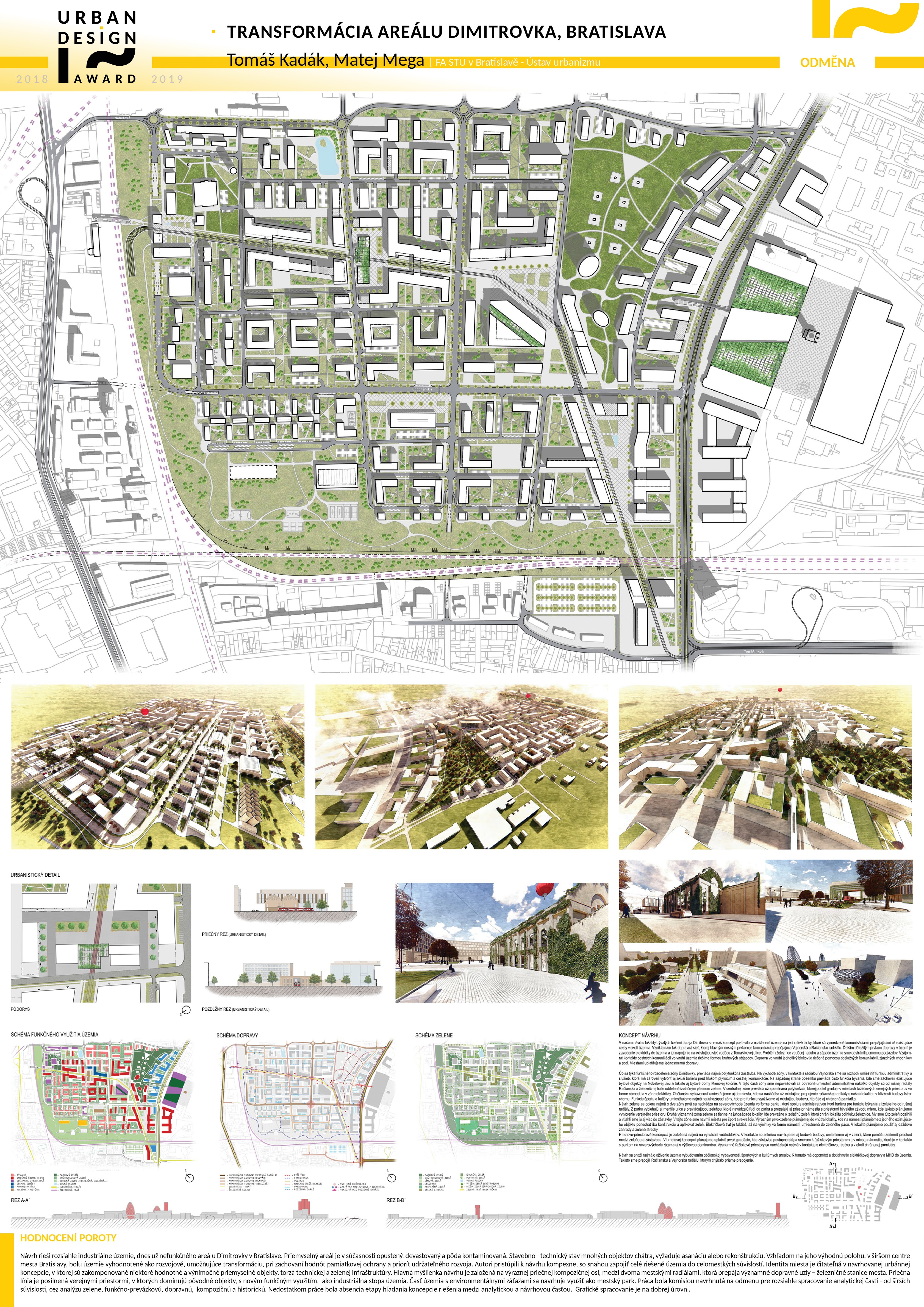 Odmenu sa porota rozhodla udeliť dvojici Barbora Gunišová a Dominik Haviar z Ústavu urbanizmu a územného plánovaním FA STU v Bratislave za projekt Transformácia areálu - Dynamitky - Bratislava-Dimitrovka. Projekt vyniká vďaka prehľadnej a zrozumiteľnej analytickej časti a sympatickej miery “zoomu” v návrhu. V neposlednom rade porotu oslovilo tiež výsostne urbanistické zadanie, ktoré transformuje bratislavské územie s rozlohou 105 ha na autonómnu mestskú štvrť.