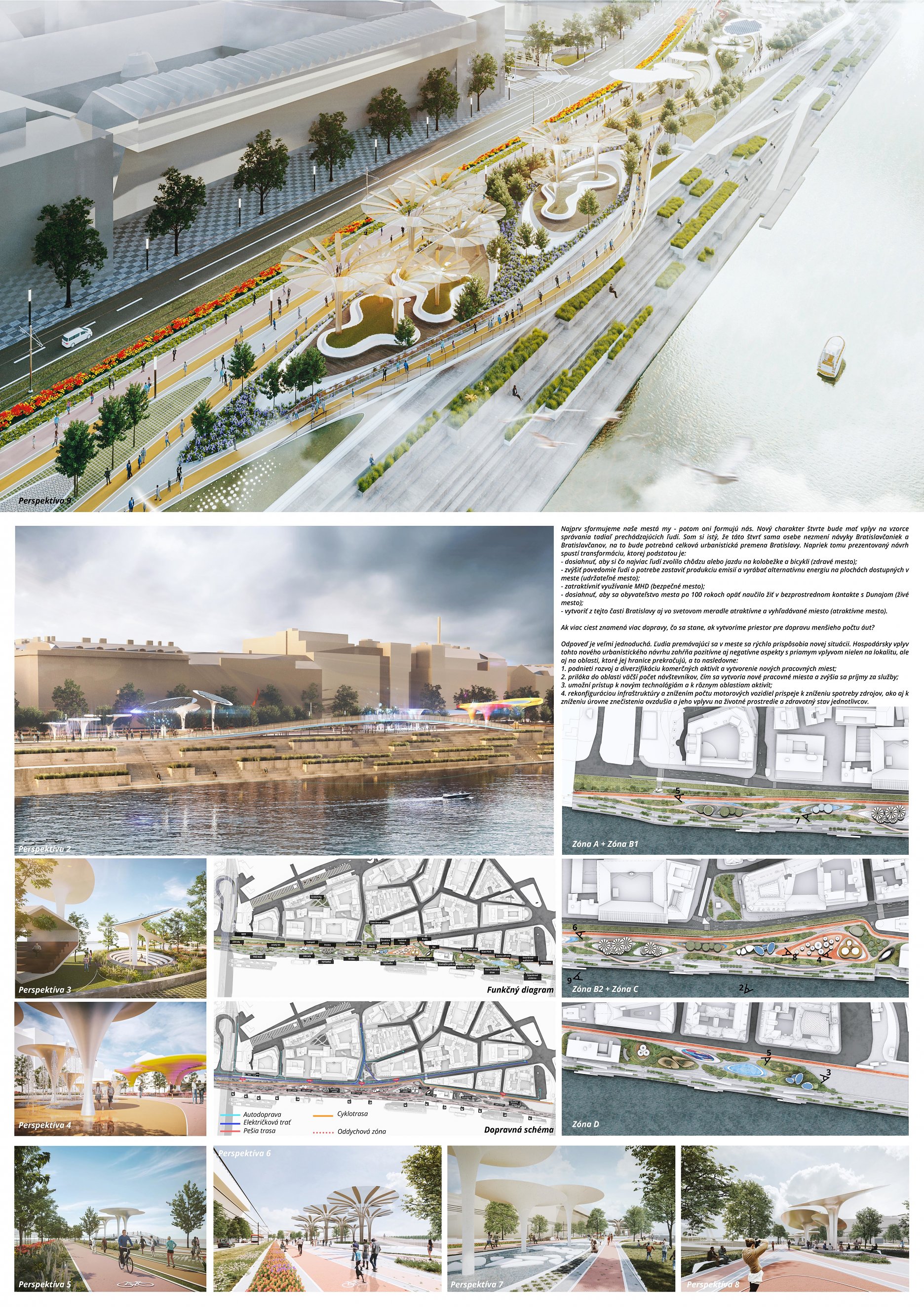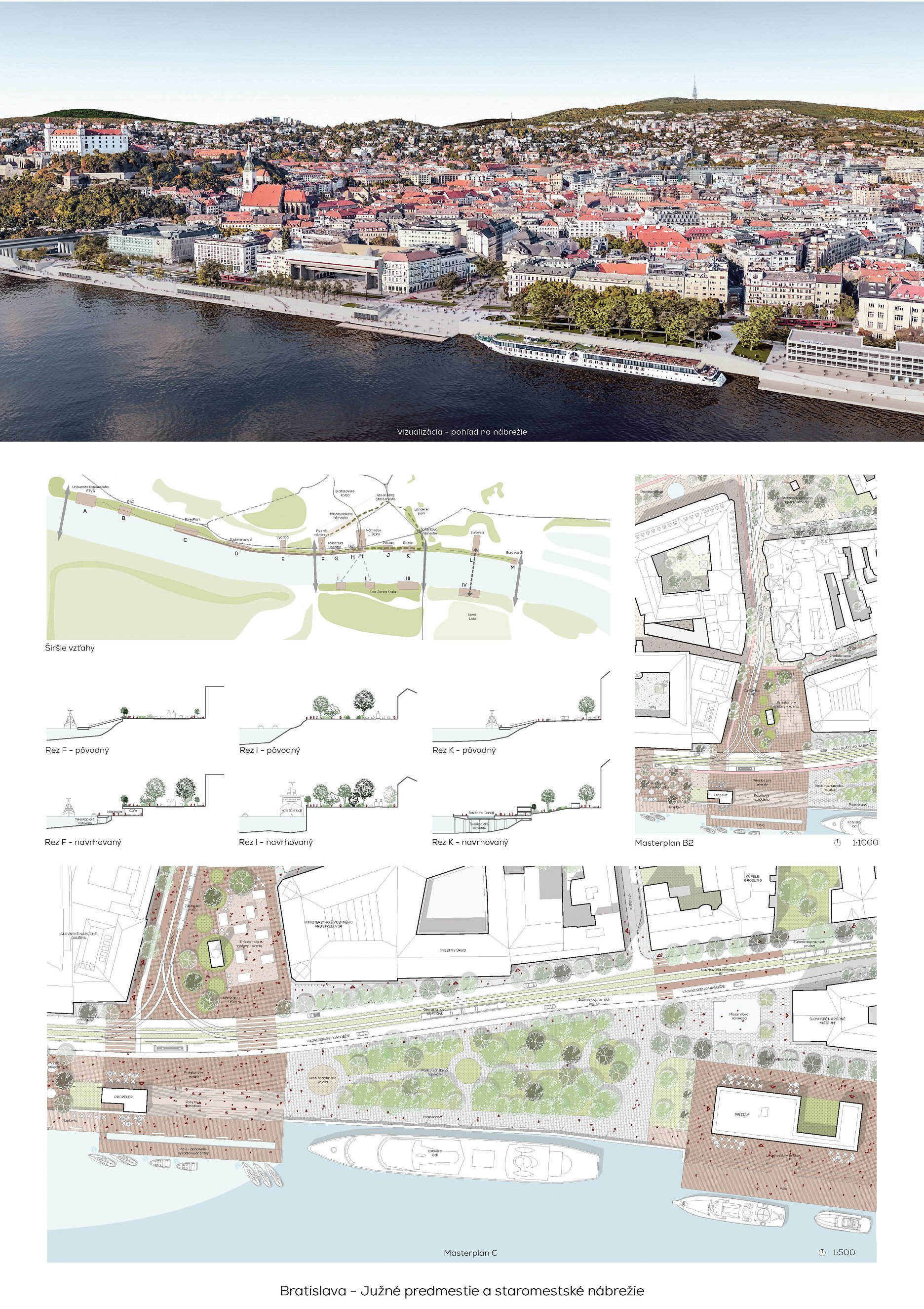 Za skvelé súťažná porota považuje prepojenie Starého Mesta voči línii nábrežia v rozhodujúcich ťahoch obzvlášť vyústenia Štúrovho námestia vo veľkomestský priestor.
