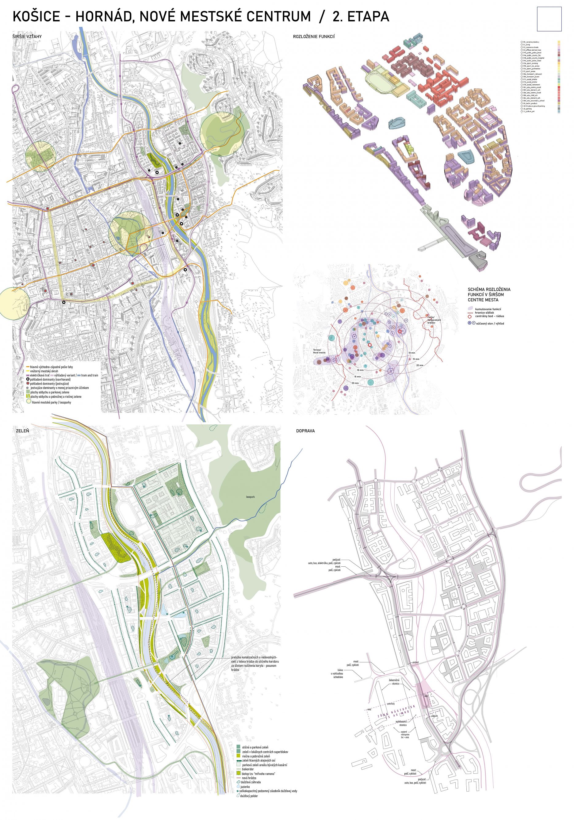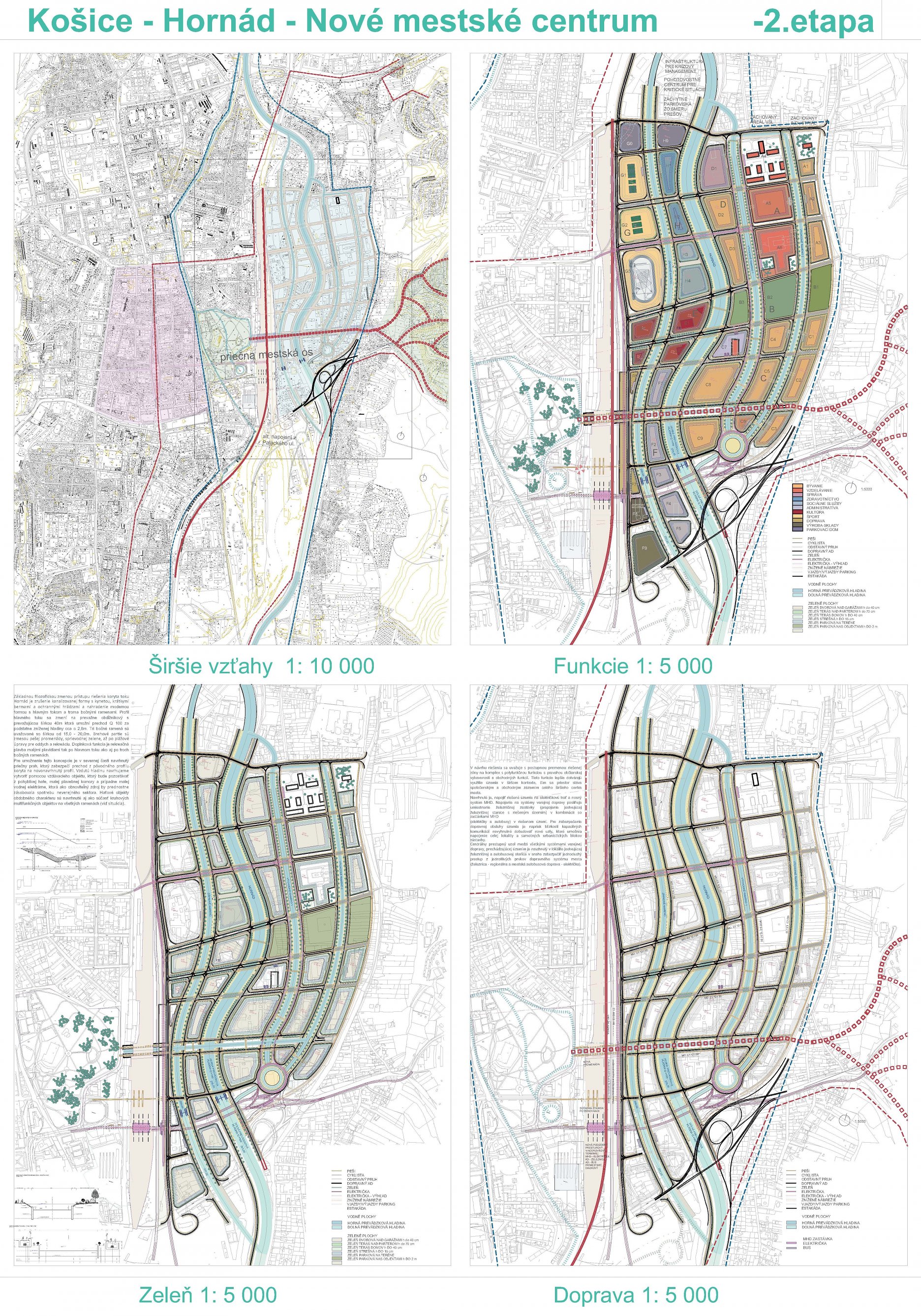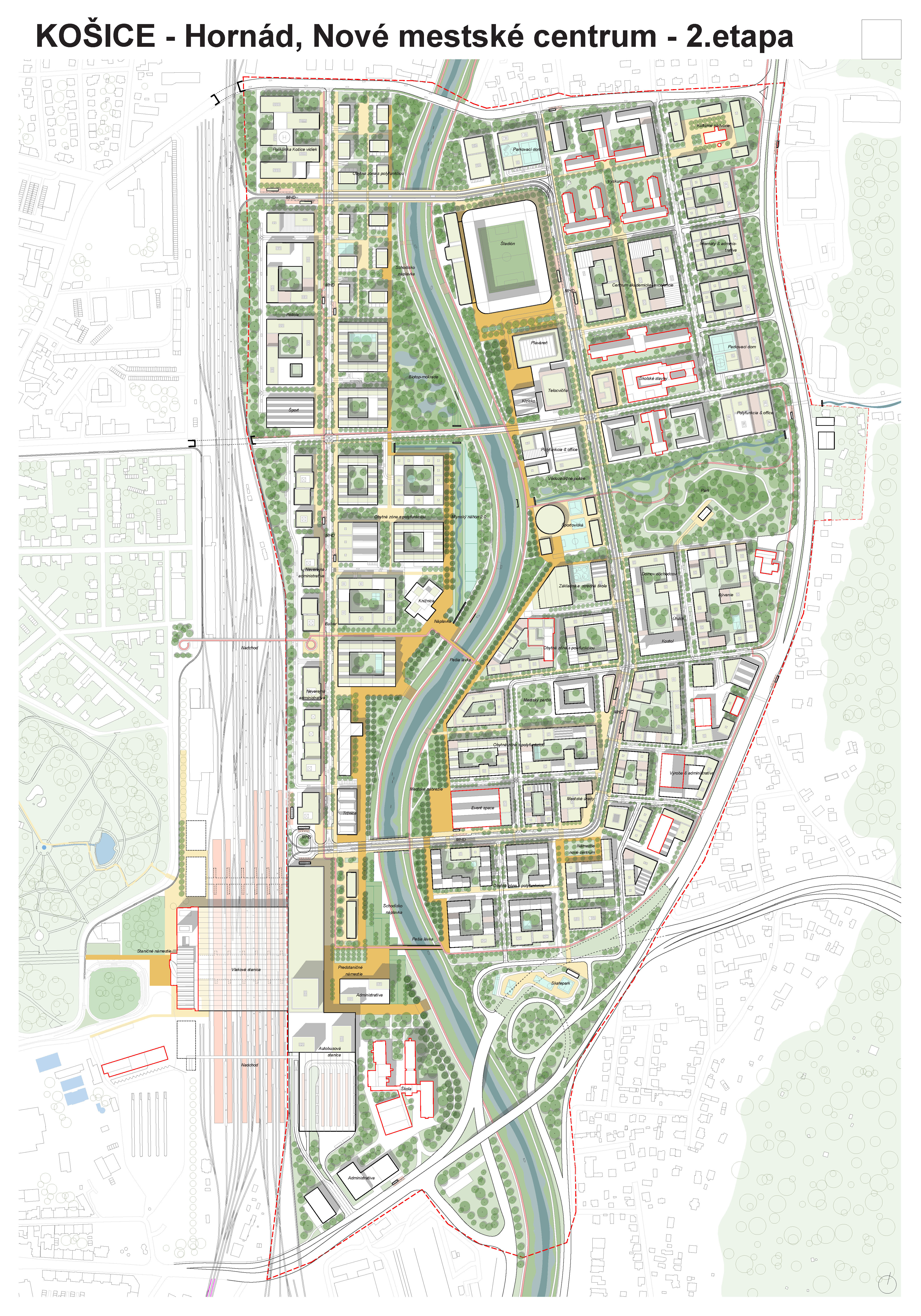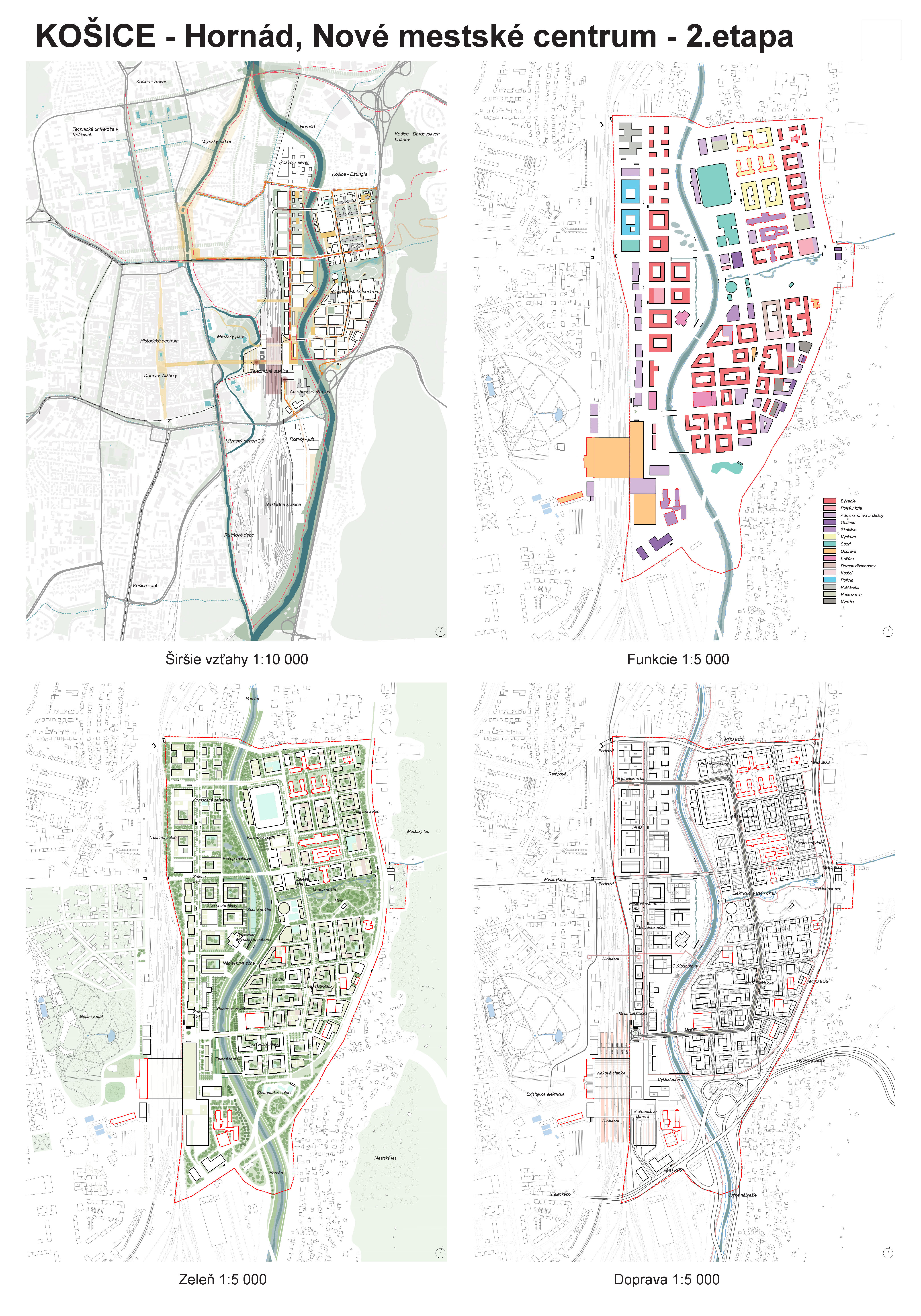 - návrh štruktúru vhodným spôsobom napája na historické štruktúry mesta a zároveň zhodnocuje územie okolia Hornádu v riešenom území