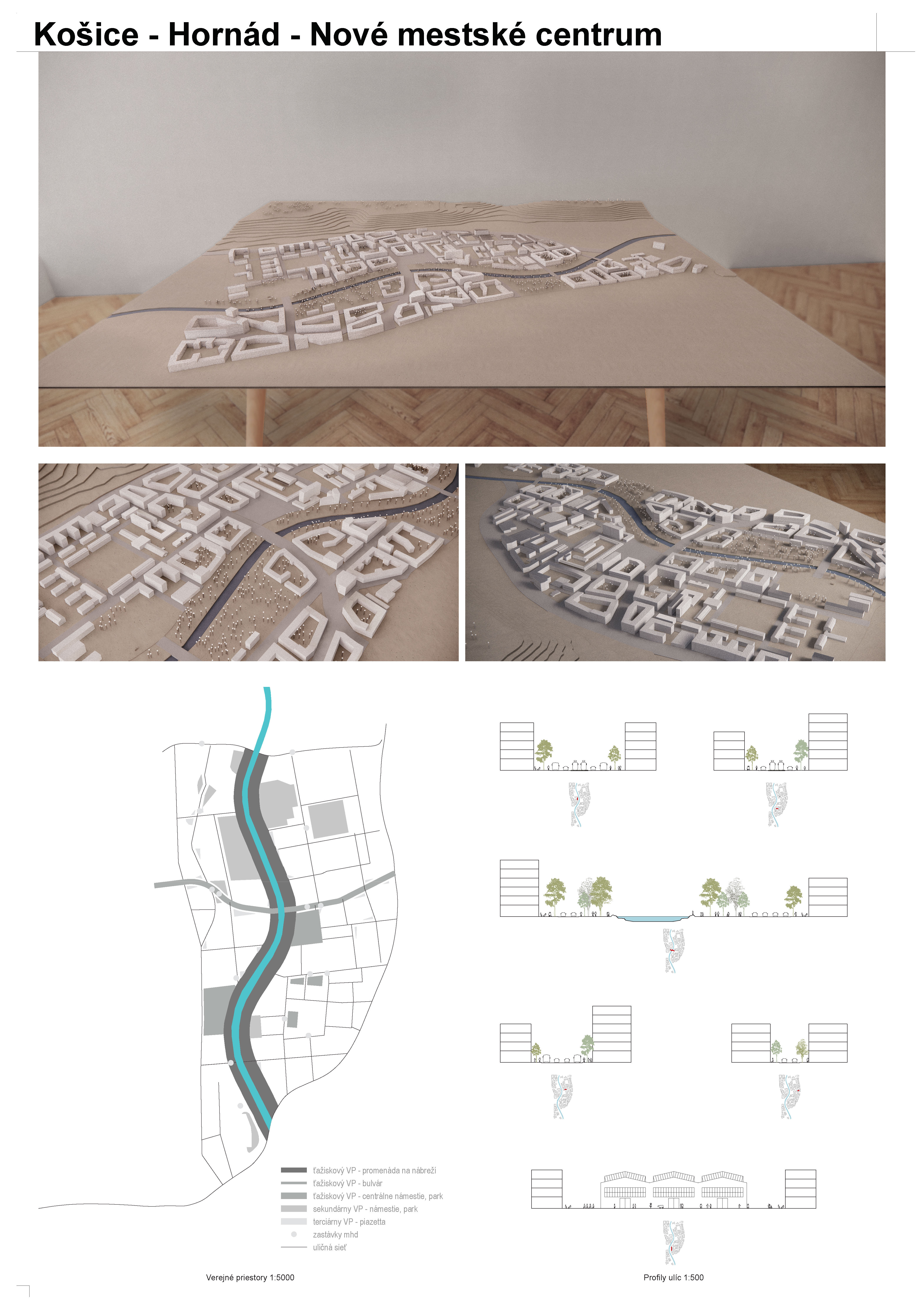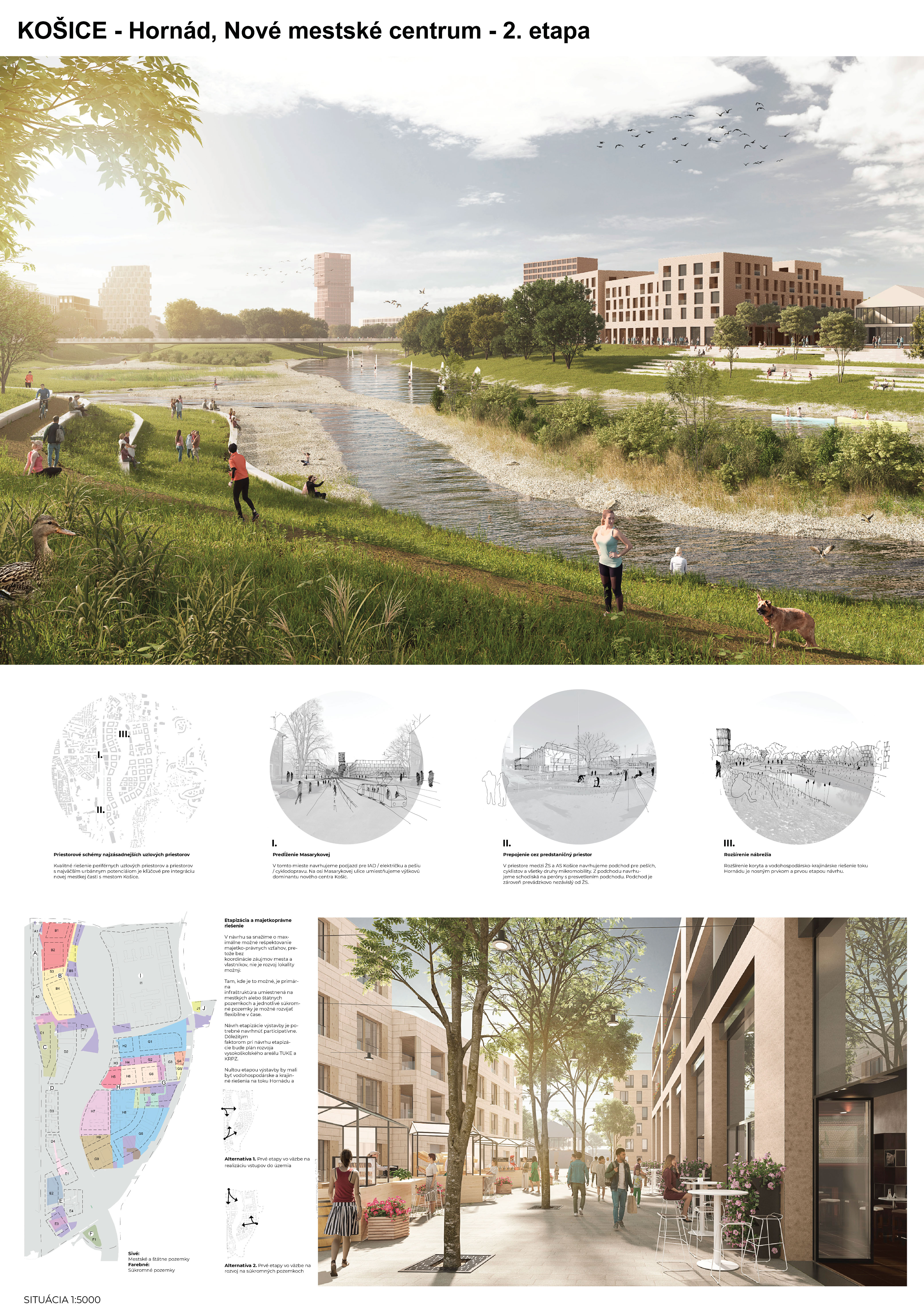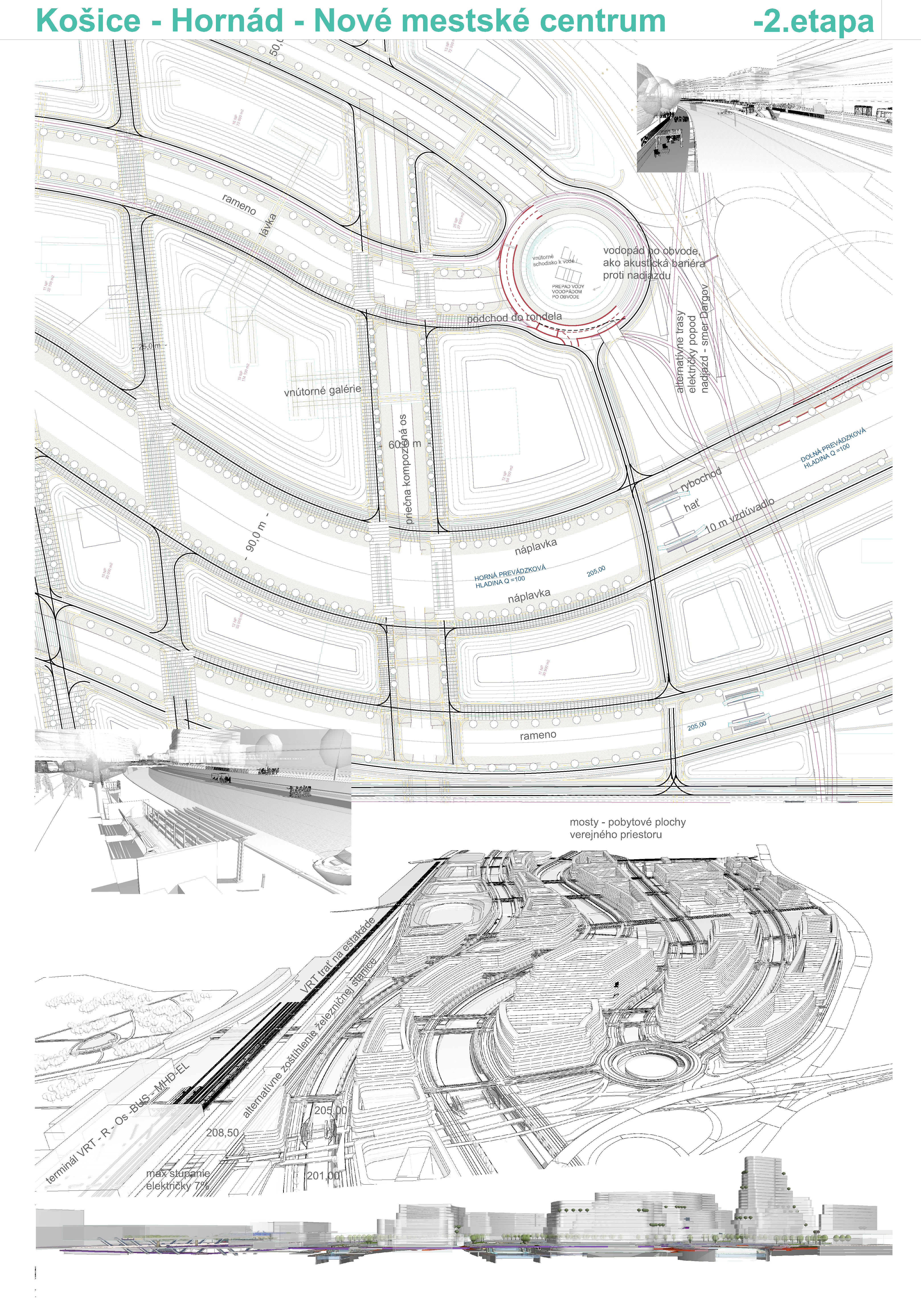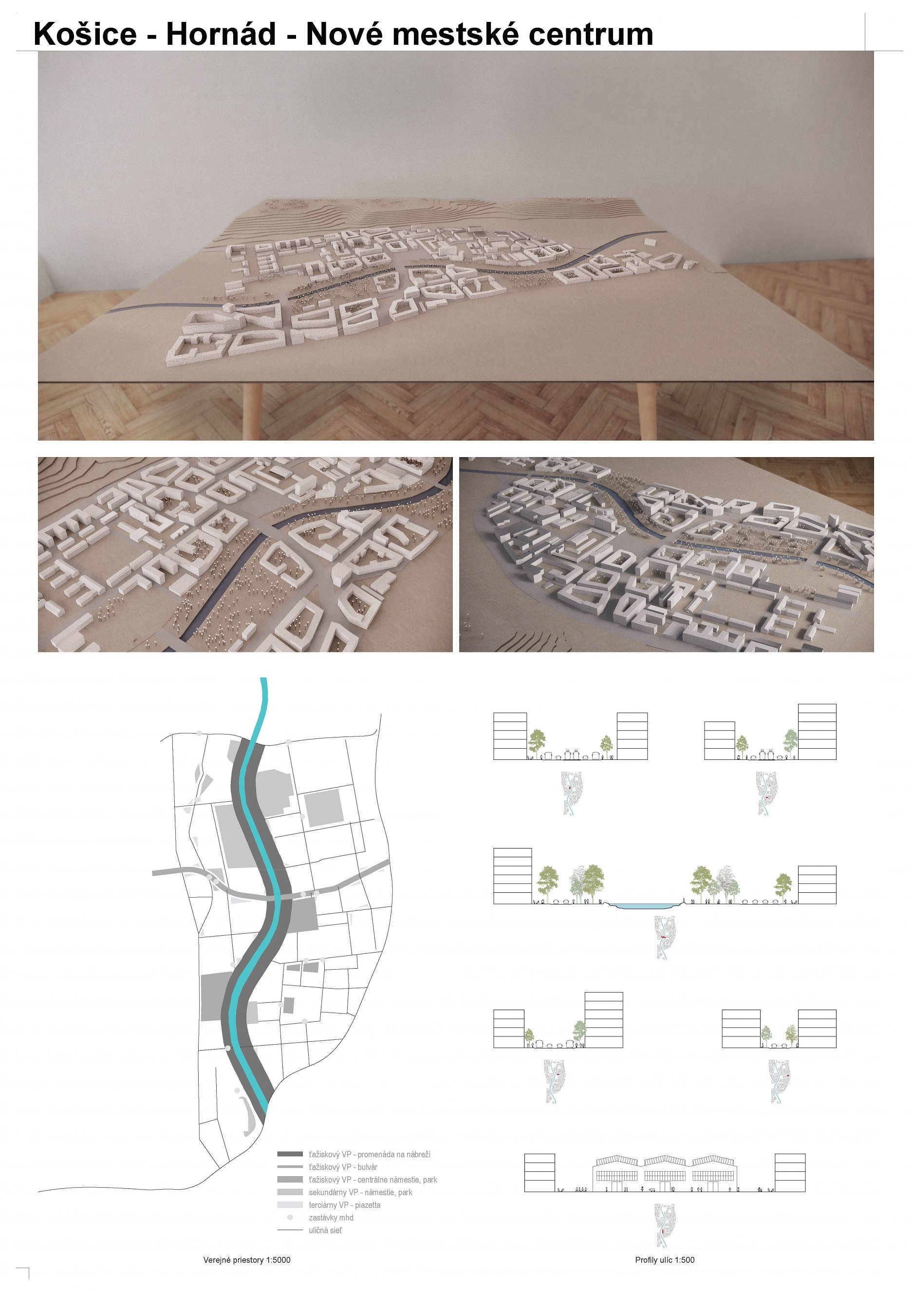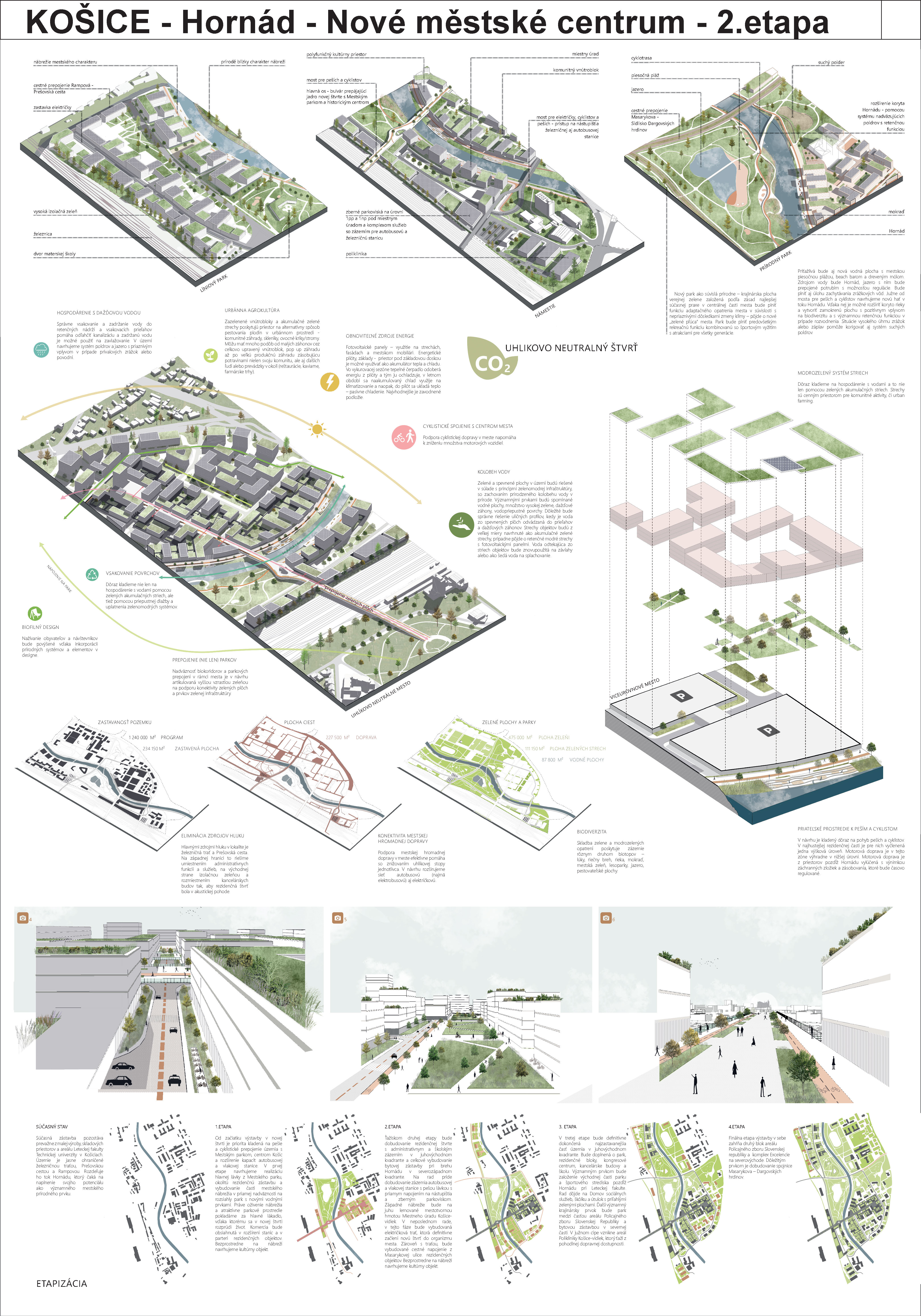 - návrh štruktúru vhodným spôsobom napája na historické štruktúry mesta a zároveň zhodnocuje územie okolia Hornádu v riešenom území