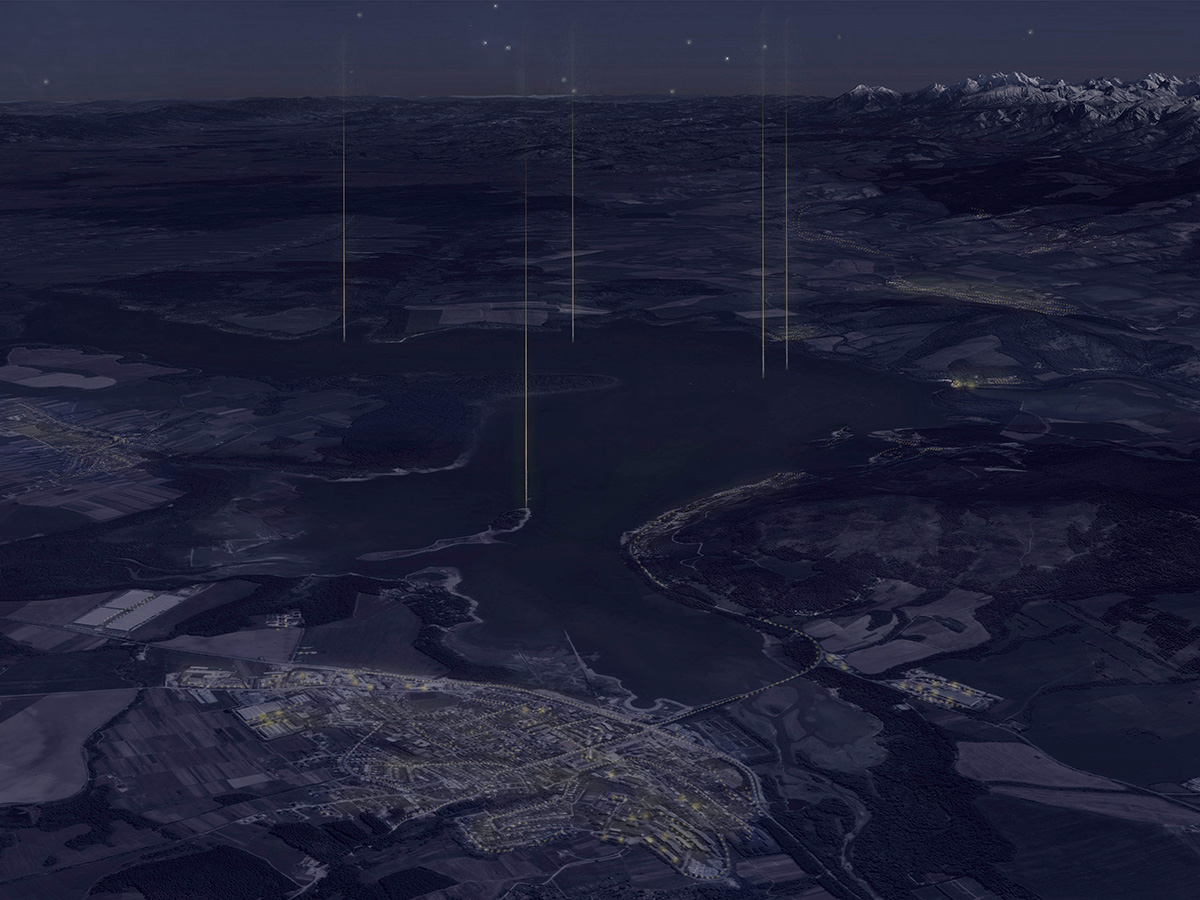 5 svetiel svietiacich priamo do nebies, ako symbol piatich zaniknutých obcí, nesúci odkaz trpkej histórie, duší zosnulých aj nádeje do budúcnosti. Práve tí, zasiahnutí odsunom kvôli výstavbe vodného diela a tí, ktorí pri výstavbe stratili najbližších, či pre pozostalých, ktorí vo vodách Oravskej priehrady prišli o príbuzných, bude memoriál symbolom úcty, rešpektu a pokory. V neposlednom rade svetlo môže byť chápané ako paralela k výrobe elektrickej energie a výstavbe priehrady, ktorá je prínosom pre celý región. V návrhu pracujeme s odkazom na kultúrnu historickú krajinu, ktorá stavbou priehrady zanikla. 5 svetiel je situovaných na miestach bývalých obcí, 4 svetlá plávajú na vodnej hladine, posledné z nich je umiestené na Slanickom ostrove. Svetlá plávajú na štruktúre tvarovo odkazujúcej na strechy kostolných veží zatopených obcí. 5 svetiel je viditeľných z ďalekého okolia, nakoľko svietia do výšky takmer sto metrov. Každý z Námestova a okolitých obcí môže vidieť prítomnosť memoriálu ako súčasť krajiny, miesta, času. Počas dňa je badať reflexie svetla na vodnej hladine. Reflexné body, ktoré pútajú pozornosť.