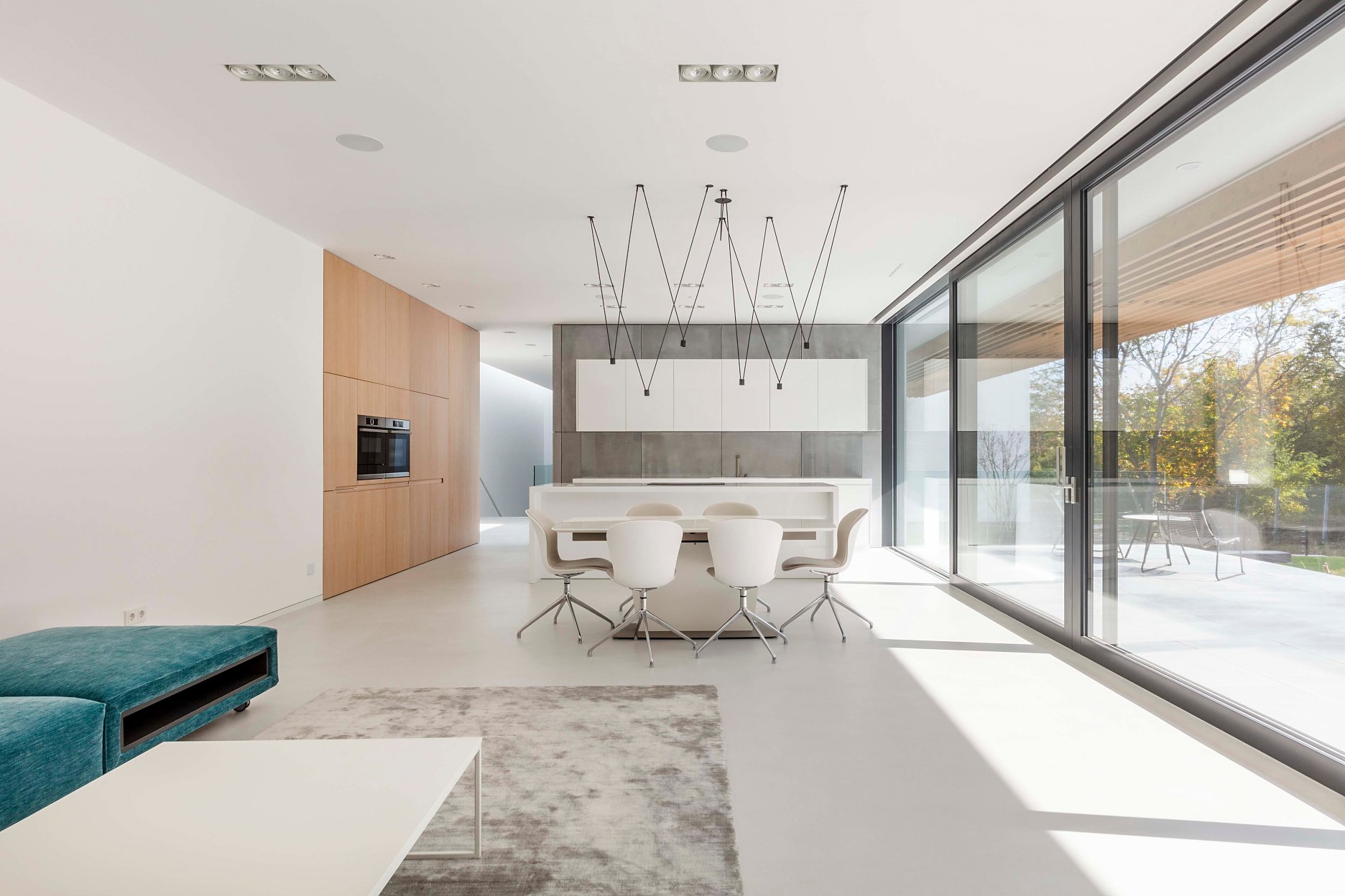 Zdvižno-posuvné dvere na prízemí opticky otvárajú obytný priestor do záhrady a blízkej prírody. "Práca so svetlom zdôrazňuje sofistikované priestorové väzby,“ hovorí člen poroty architekt Gregor Wakolbinger a dodáva: "Okrem toho spadá projekt do energetickej triedy AA+ a možno ho považovať za model energeticky efektívnej výstavby."