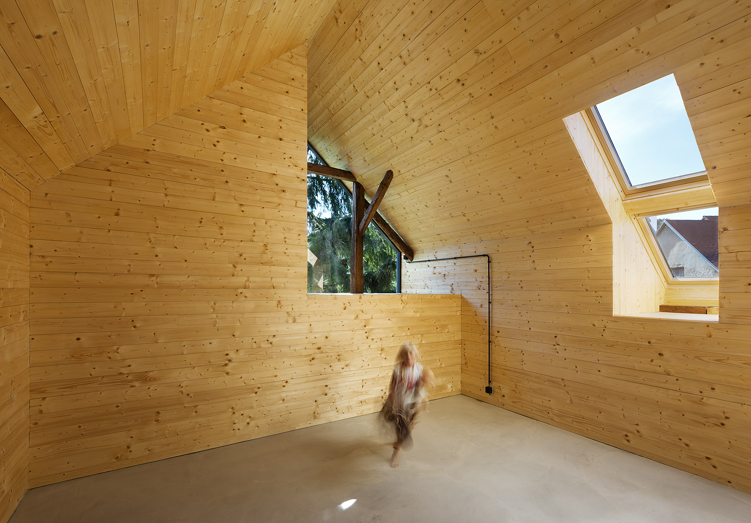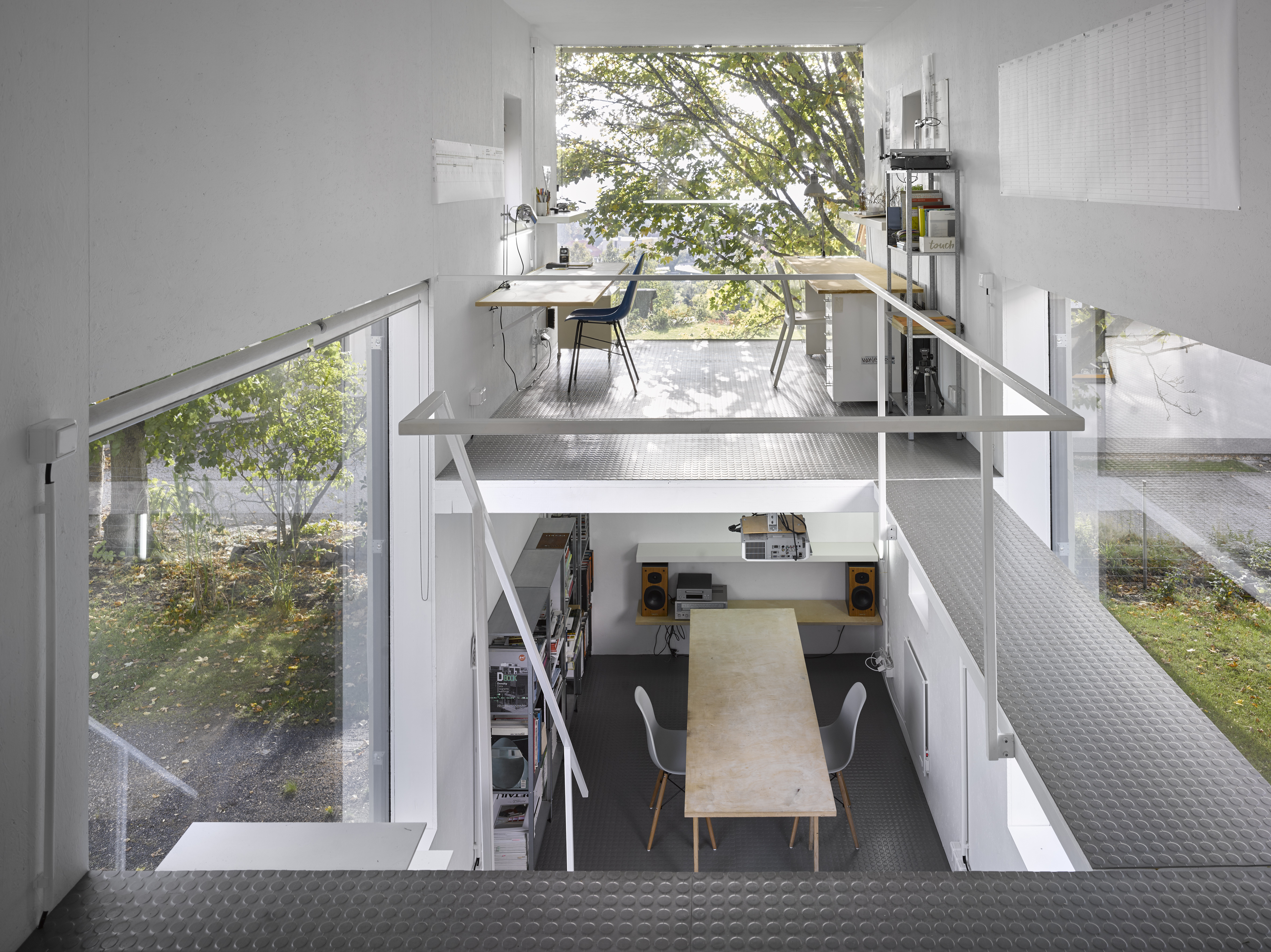 "Tato realizace vyzývá k zamyšlení nad pojmy „norma“ a „očekávání“ v rámci rozvoje venkova a v regionálním kontextu. Zde jsou všechny typické představy o bydlení a práci přehodnoceny a slity dohromady s ohledem na osobní preference obyvatel. Dům byl navržen a zamýšlen pro architektonický tandem a koncipován do dvou jednoduchých krychlových objemů, jeden je určený pro bydlení a druhý pro práci. Pravoúhlé objemy rámují robustní strom v prázdnotě mezi nimi s výhledem na jih. Porota se domnívá, že u tohoto projektu jsou základní podmínky pro život řešeny experimentem a inovací a hranice mezi veřejným a soukromým, bydlením a prací se prolínají.