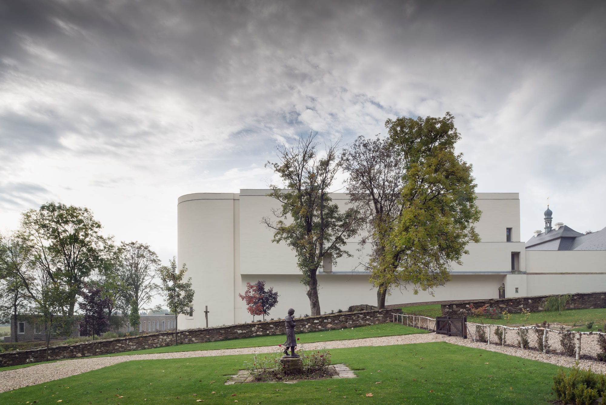 Prestavba poľnohospodárskeho statku na kláštor trapistov. Výrazovo minimalistická architektúra s citom a pokorou k miestu a kontextu (ATELIER SOUKUP OPL ŠVEHLA, 2014).