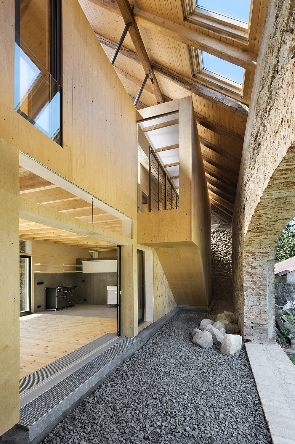 Dům využívá průmyslové komponenty, jejichž aplikace je velice efektivní a zároveň zábavná, často hraničící s úrovní fetiše. Opláštění, obklad z průhledných akrylátových panelů, je jednoduše upevněno na kostru z měkkého dřeva, čímž vzniká zajímavý detail s obnaženou konstrukcí. Velká zapuštěná okna umocňují subtilní vzhled stavby a přitom rámují poutavé výhledy ven i dovnitř. Interiéry obou domů jsou provedeny ve zredukované a základní paletě materiálů; dřevotřískovými deskami, dřevěnými trámy, překližkou, surovým kovem a pryží. Dokazuje to, že ta nejlepší architektura nemusí být ani zdaleka nejdražší.