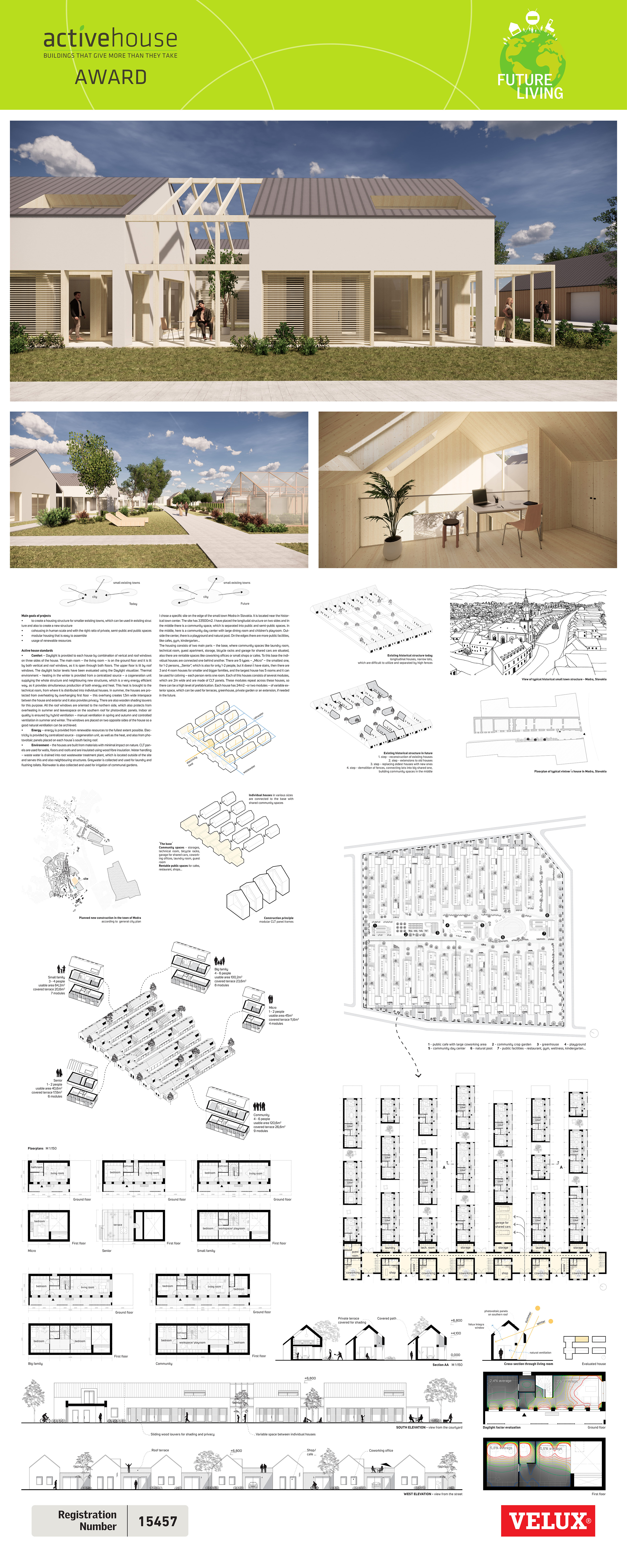 Projekt pracuje s tradičnou štruktúrou dediny, rešpektuje základné formy a dispozičné riešenie vidieckych domov. Koncept je použiteľný na zahustenie existujúcej zástavby aj na doplnenie úplne novou štruktúrou. Prirodzeným spôsobom pracuje so základnými princípmi prirodzeného osvetlenia a vetrania. Dispozície sú funkčné. Projekt neprináša žiadne zásadne nové myšlienky, ale pracuje s existujúcimi, osvedčenými princípmi.