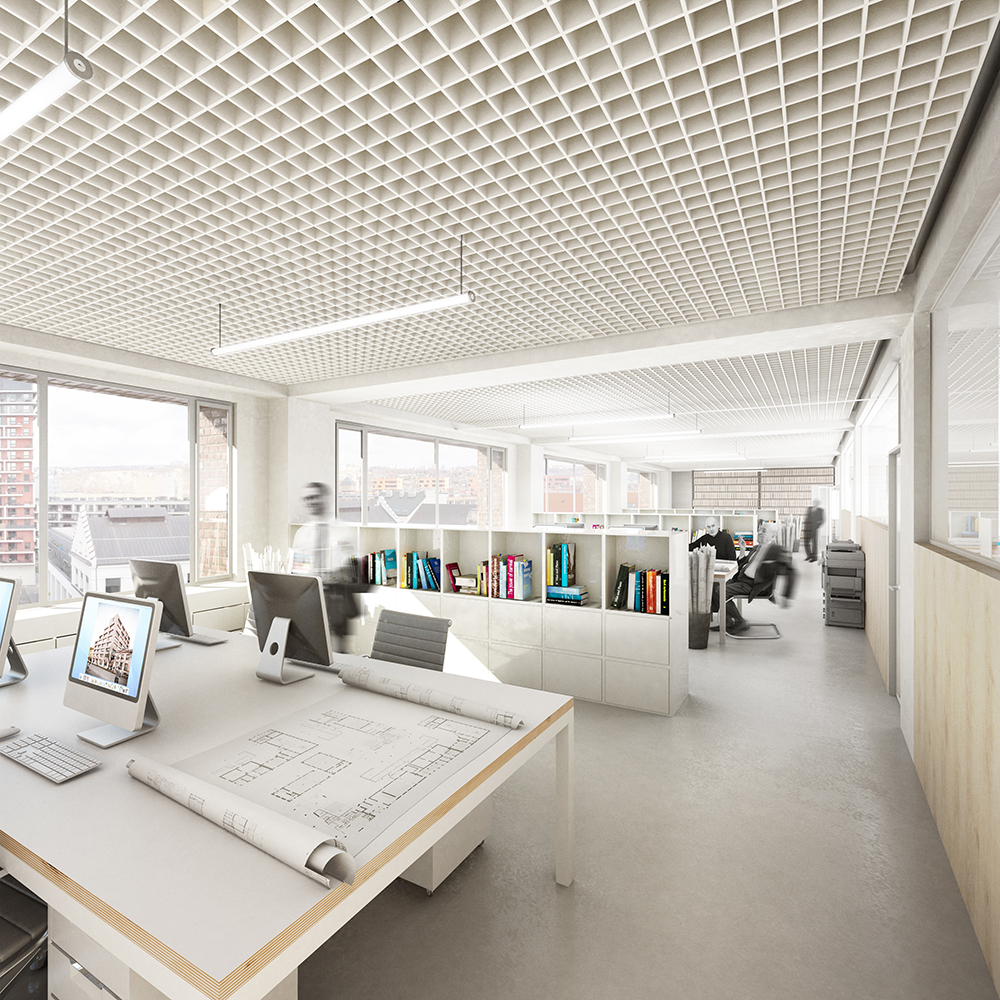 "Výrazové prostředky použité při rekonstrukci domu citují tvarosloví a matérii Holešovic, dům ctí historický kontext čtvrti, ctí její specifika, ctí průmyslovou estetiku v Holešovicích často postavenou na detailu z cihly. Byť je objekt výrazný, jeho výraznosti je docíleno pokornou cestou - použitím tradičních holešovických motivů. Původní objekt je očištěn na samotný skelet, na technickou nutnost – na nosnou konstrukci, kterou vnímáme jako krásnou. Krása inženýrských staveb tkví v jejich opravdovosti a upřímnosti. Proto ctíme velikosti stavebních modulů, rytmus konstrukce. Používáme motivy, které dělají z běžného domu dům vznešený – radnici."