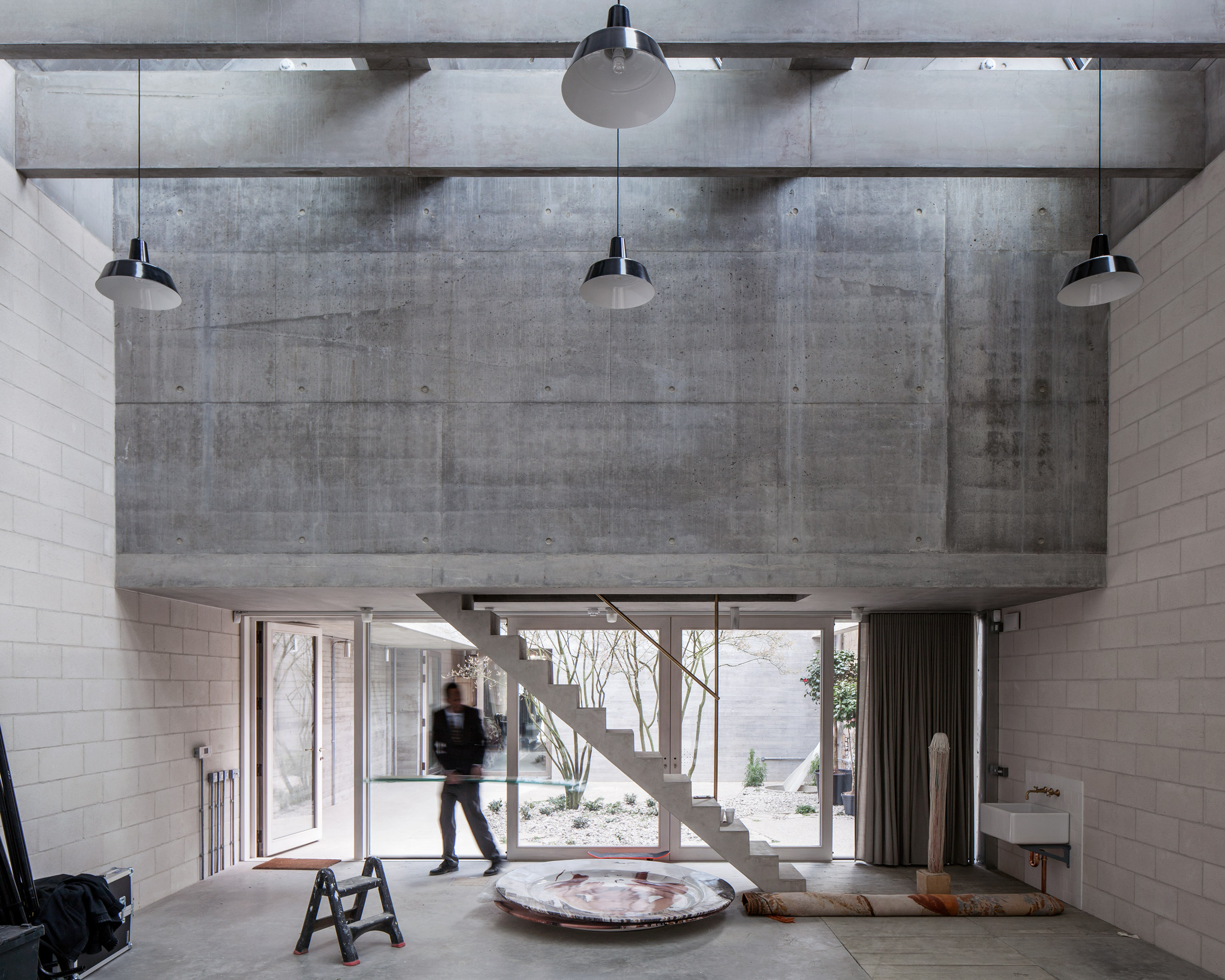 Projekt vtesnaný na veľmi úzku a dlhú parcelu. Budovy vznikli pre potreby nového štúdia, kancelárií a archívu fotografa Juergena Tellera. Jeho požiadavkou bol ľahký, flexibilný a neformálny priestor. S prirodzeným svetlom a spoločenským charakterom.