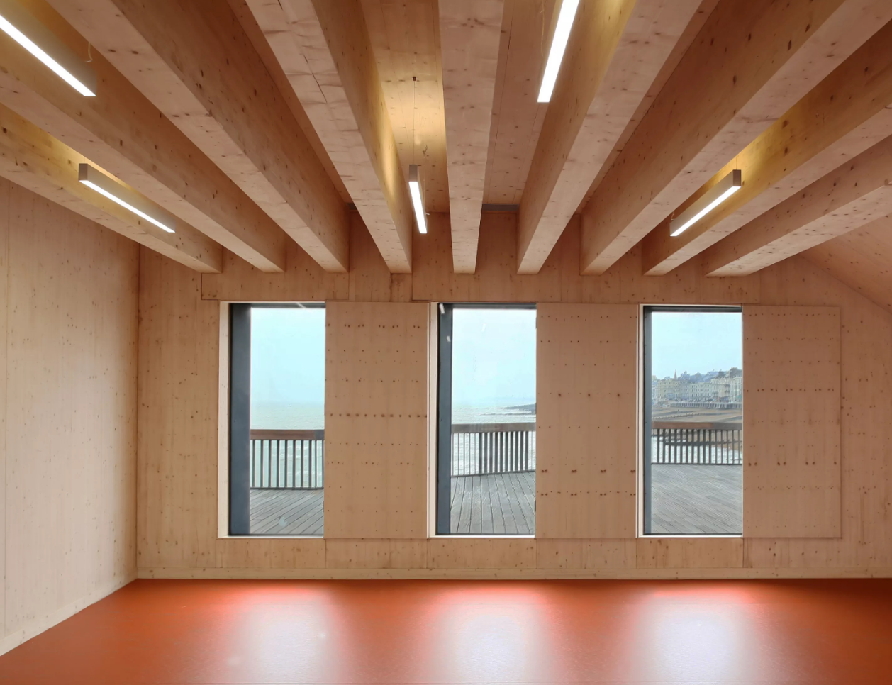 Nové návštevnícke centrum nahradzujúce najslabší úsek poškodeného móla je relatívne jednoduchá stavba z CLT panelov, ktorá je obložená rekultivovaným drevom, zachráneným z pôvodného ohňom poškodeného móla. Sedenie na streche objektu sa stalo miestom, kam návštevníci radi zájdu na kávu. Stavba ponúka variabilný priestor pre podujatia, výstavy a vzdelávanie. Rekultivovaný drevený nábytok vznikal ako súčasť miestnej iniciatívy v oblasti zamestnanosti. Projekt pomohol aj pri vzdelávaní novej generácie remeselníkov.