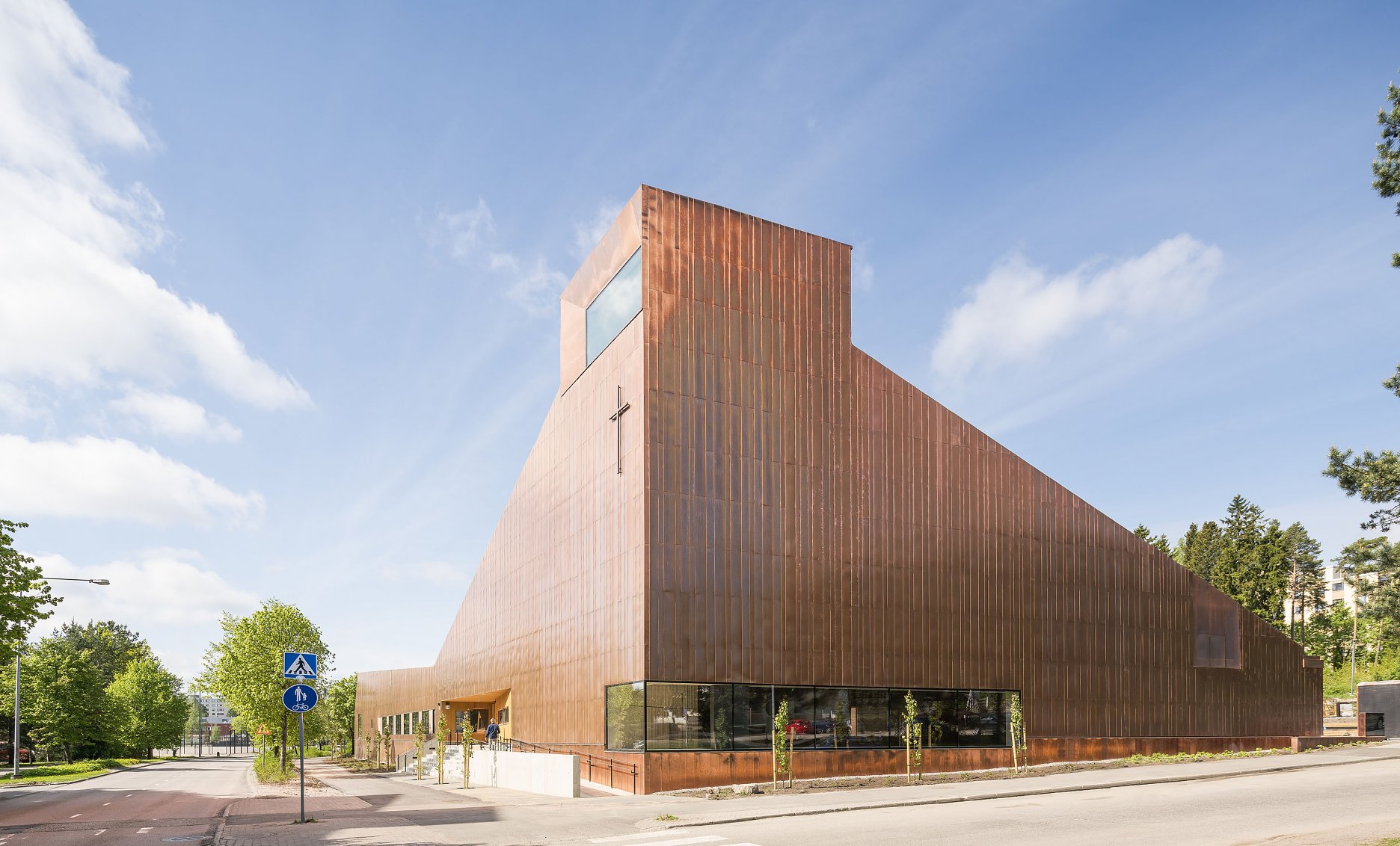 Kaplnka a komunitné centrum je multifunkčnou budovou, ktorá má svoje priestory poskytovať etnicky a kultúrne rôznorodým komunitám žijúcich v šrvrti Suvela v Helsinkách. Kompaktná medená fasáda pôsobí ako kontrast k rozmanitosti užívateľov aj množstvu vnútorných funkcií.
