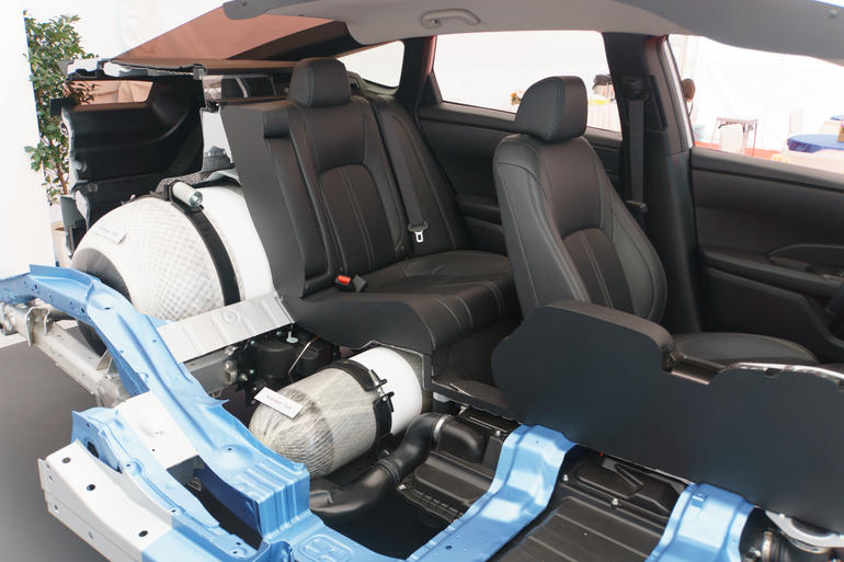 Palivový článok má výkon 100 kW, motor má však výkonový strop až 130 kW. Výkonový rozdiel nie je problém, pretože palivový článok nenapája priamo motor, ale nabíja batérie. Z tých si motor v prípade potreby dokáže vytiahnuť viac energie na pokrytie výkonových špičiek.