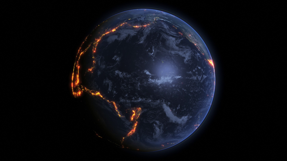 Táto dátová vizualizácia ukazuje zemetrasenia s väčšou magnitúdou ako 4 v období rokov 2000 a 2015. Čím jasnejšia farba, tým je zemetrasenie väčšie. Označenia sú kumulatívne, takže najviac aktívne územia sú viditeľne vykreslené. Túto názornú interpretáciu geologickej aktivity našej rodnej planéty vyrvorila spoločnosť s názvom 442 south.