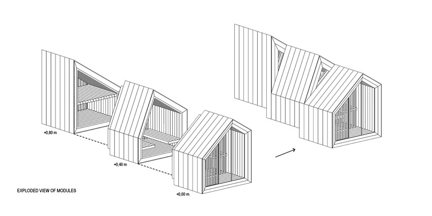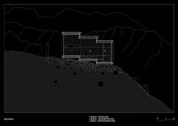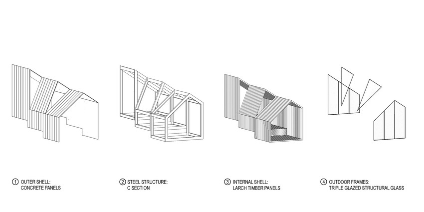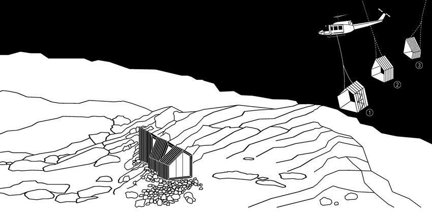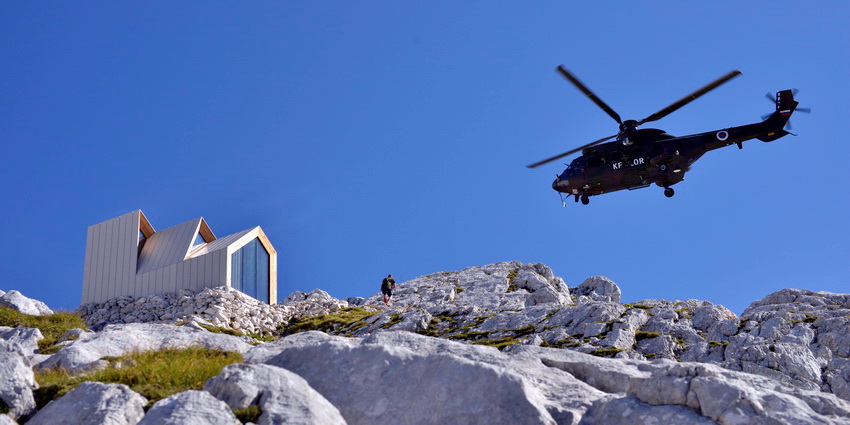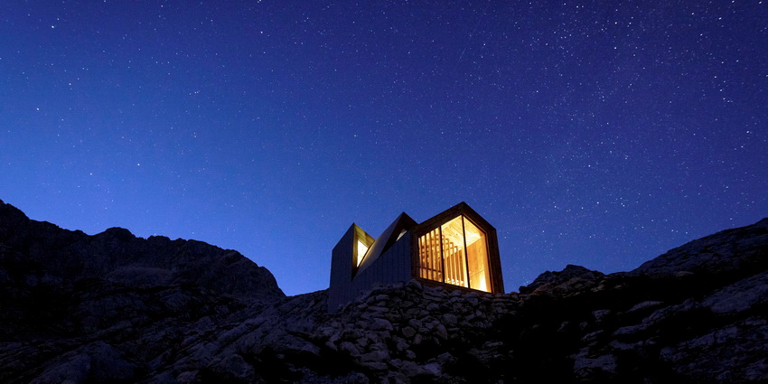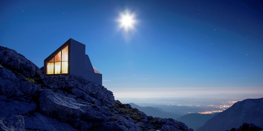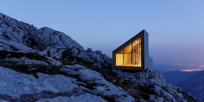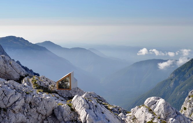 Projekt vznikol v rámci ateliérovej tvorby na the Harvard Graduate School of Design. Tím 13 študentov viedli slovinskí architekti Rok Oman a Spela Videcnik (ateliér OFIS). Zadanie bolo navrhnúť inovatívny a praktický prístrešok, ktorý by fungoval v náročných horských podmienkach. Študenti predložili 12 návrhov z ktorých bol následne vybraný finálny projekt je inšpirovaný slovinskou ľudovou architektúrou. Útulňa bola osadená presne 120 rokov po výstavbe slávneho prístrešku Aljaz na vrchole Triglavu. Nová útulňa stojí na mieste pôvodného 50 ročného bivaku. Najlepšie projekt priblíži mesiac staré video: